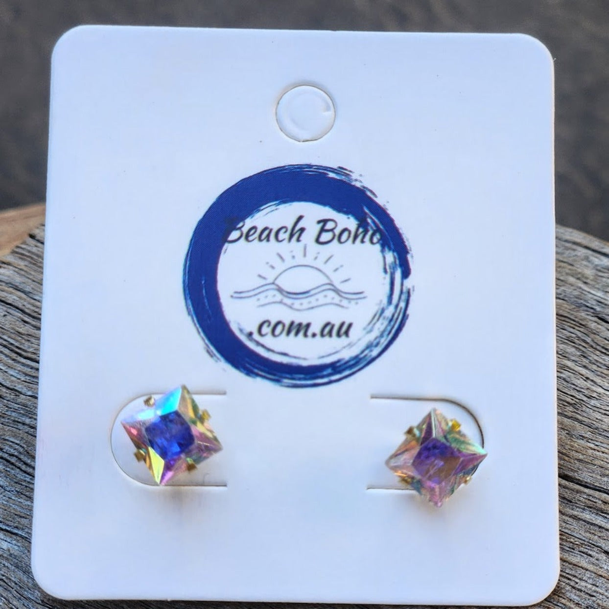 Rainbow Round AAA Cubic Zirconia Stud Earrings made with Titanium Steel Tarnish Resistant 6 mm