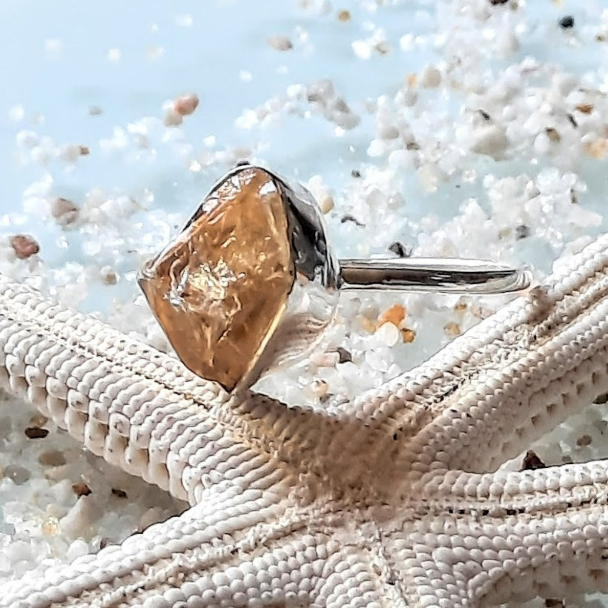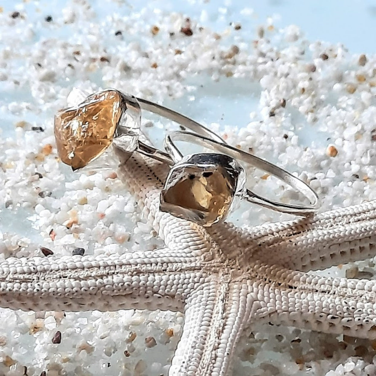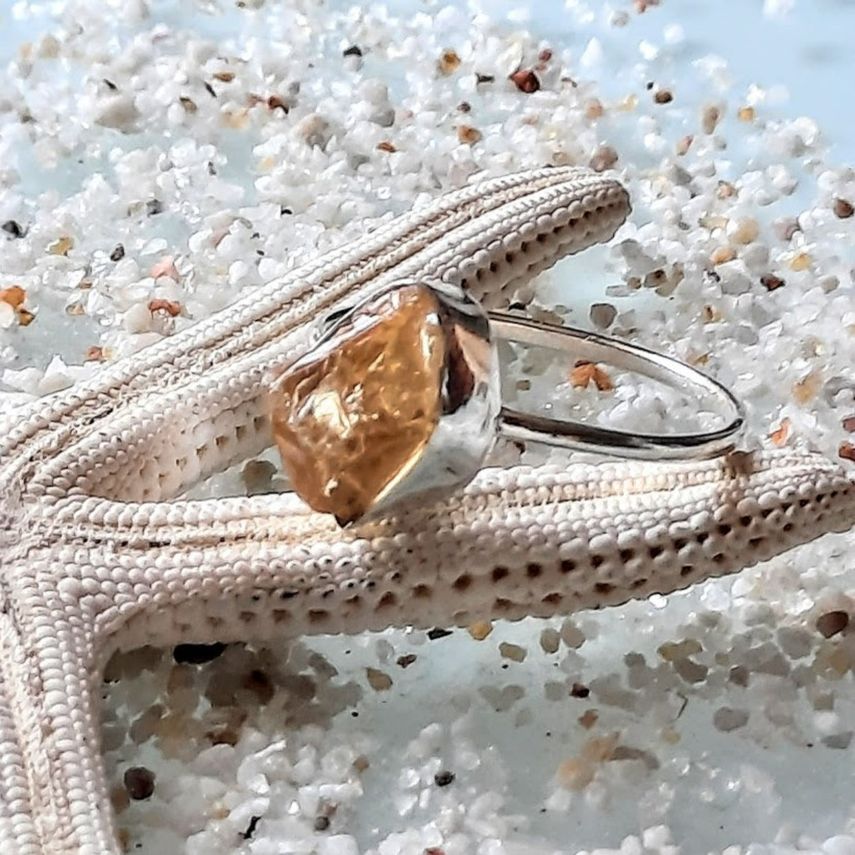 Each Piece entirely unique, made from Raw Citrine Stone, delicate Silver Ring