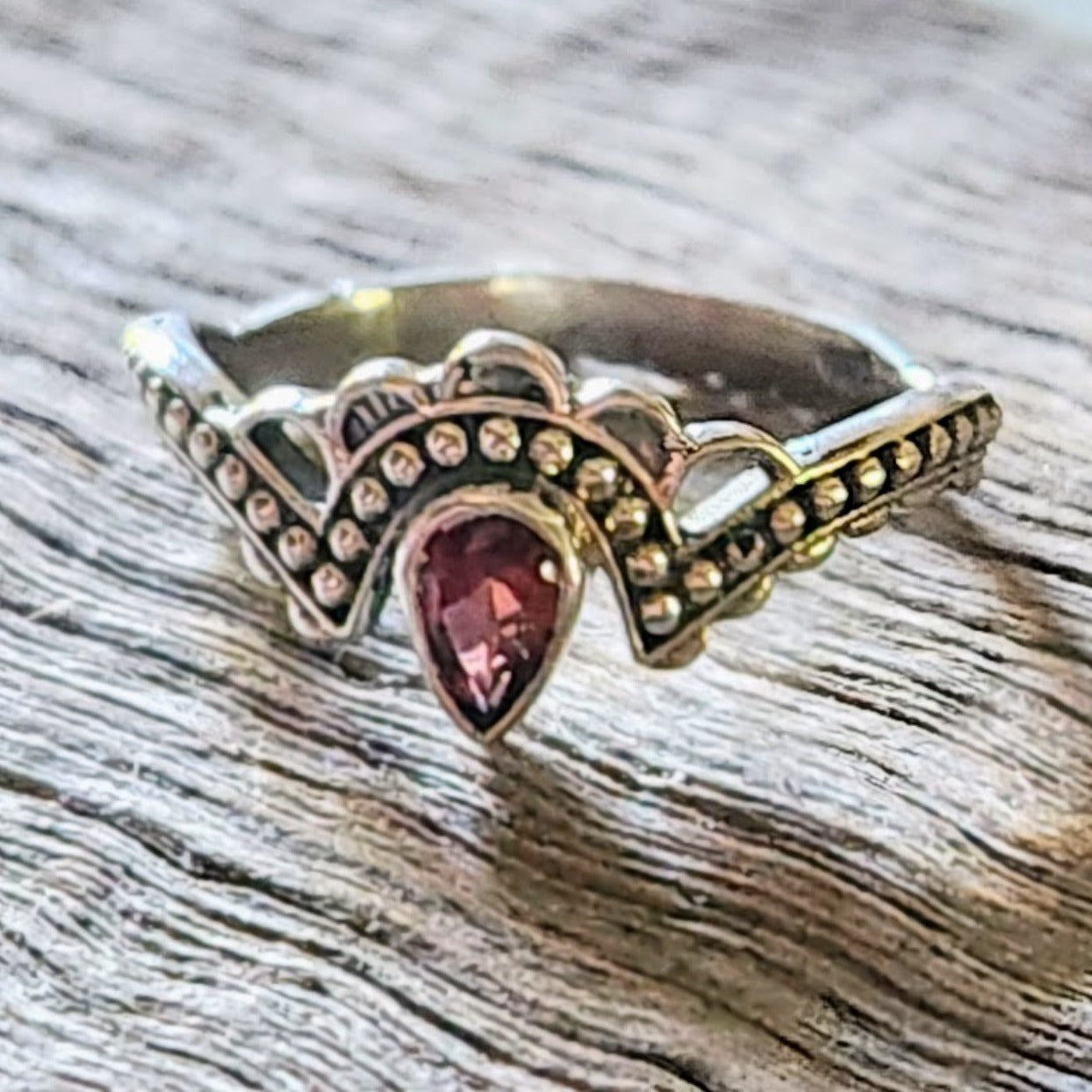 RETRO GARNET - TEARDROP 925 BEADED RING