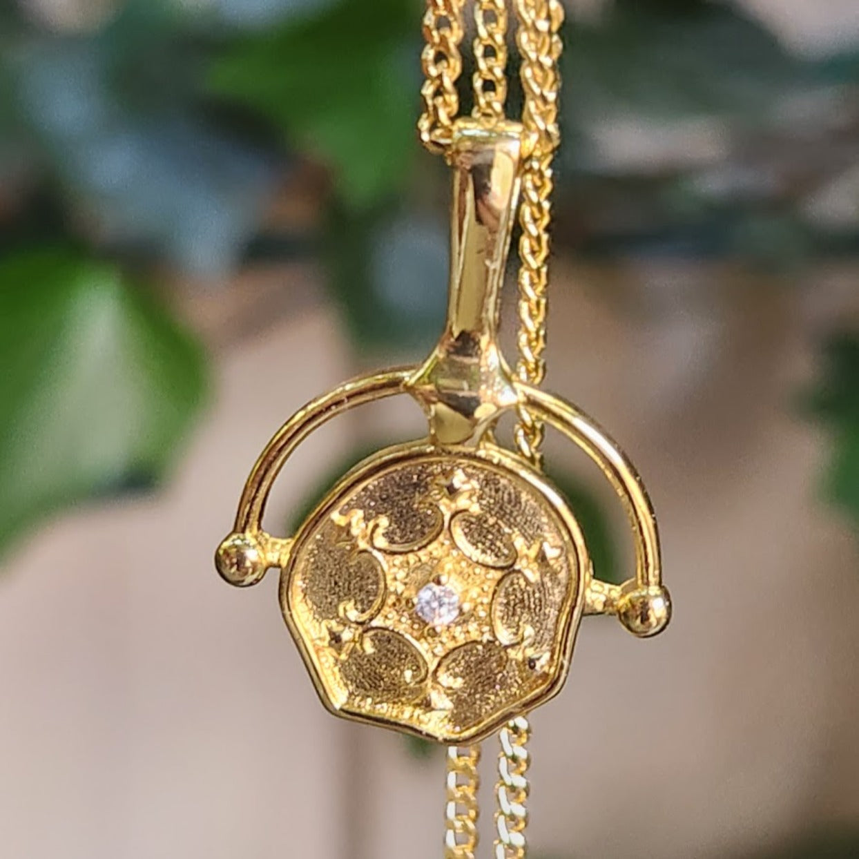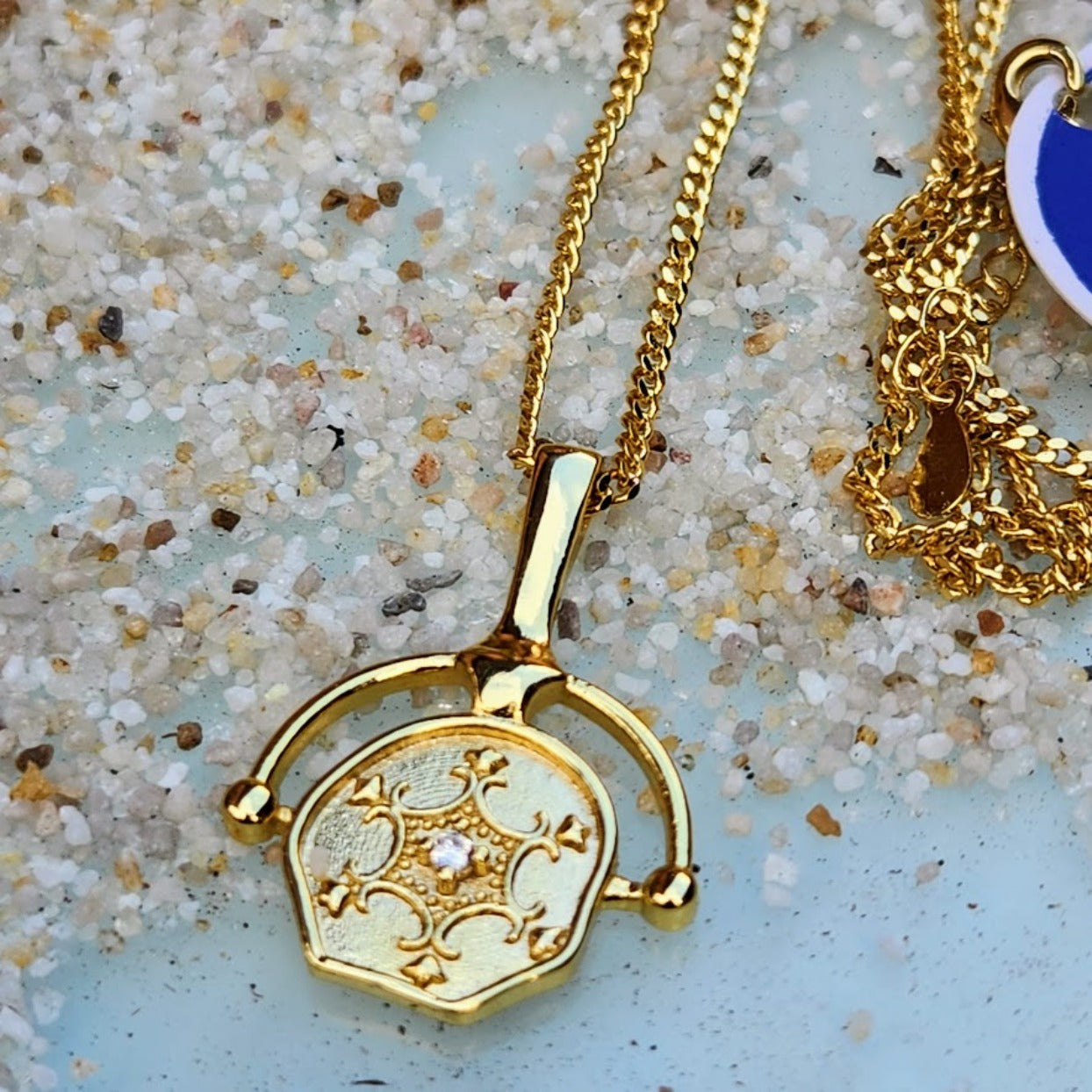 Roman Gold Cubic Zirconia Coin Vermeil 925 Necklace / 14 ct Vermeil Gold Plating over 925 Sterling Silver Necklace / High Gold Resistant 18 Inch Necklace