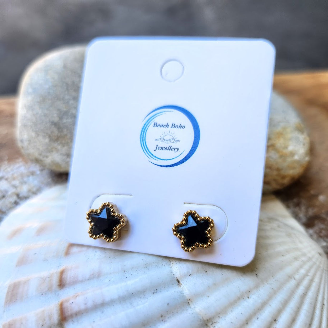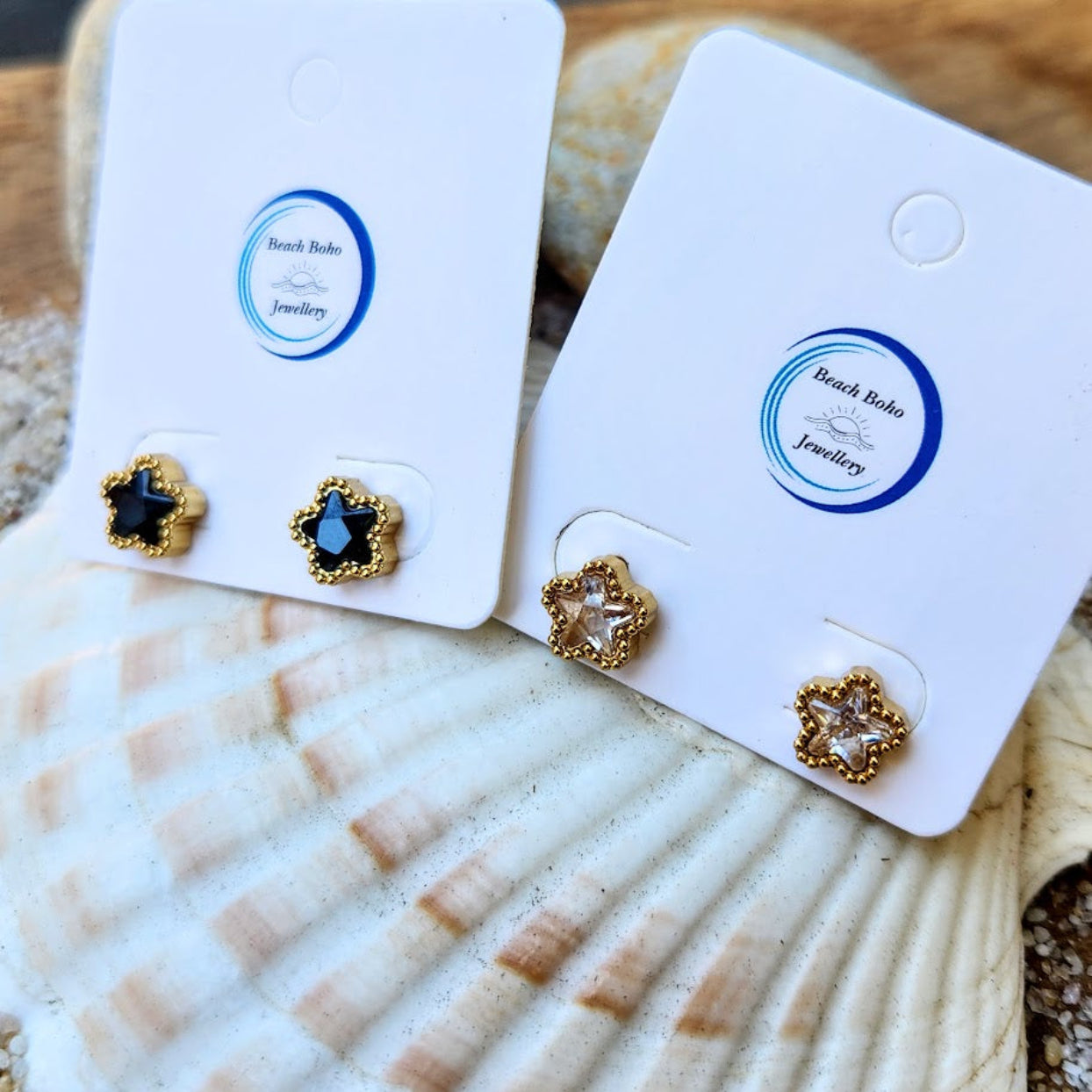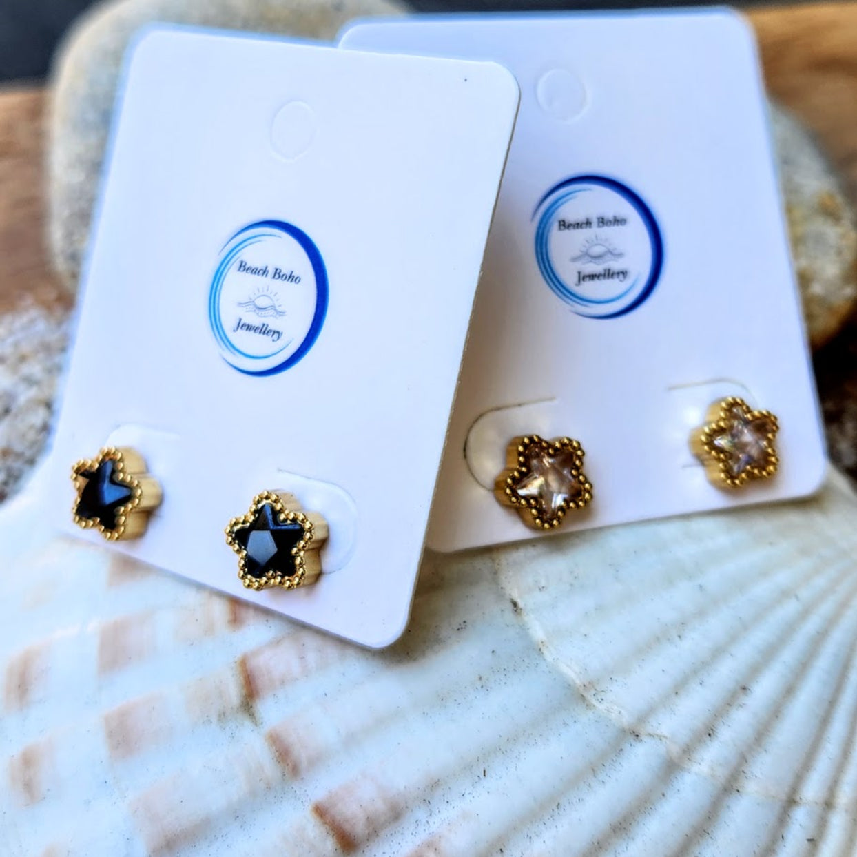 PRETTY FLOWERS - CRYSTAL OR BLACK WATERPROOF STUD EARRINGS