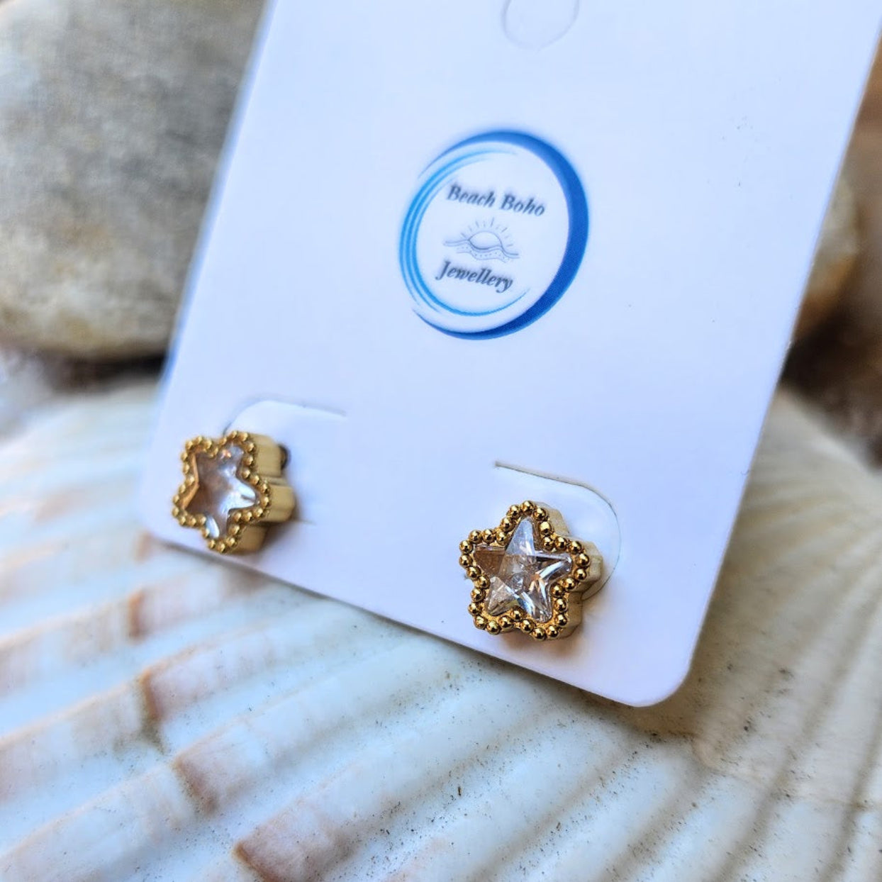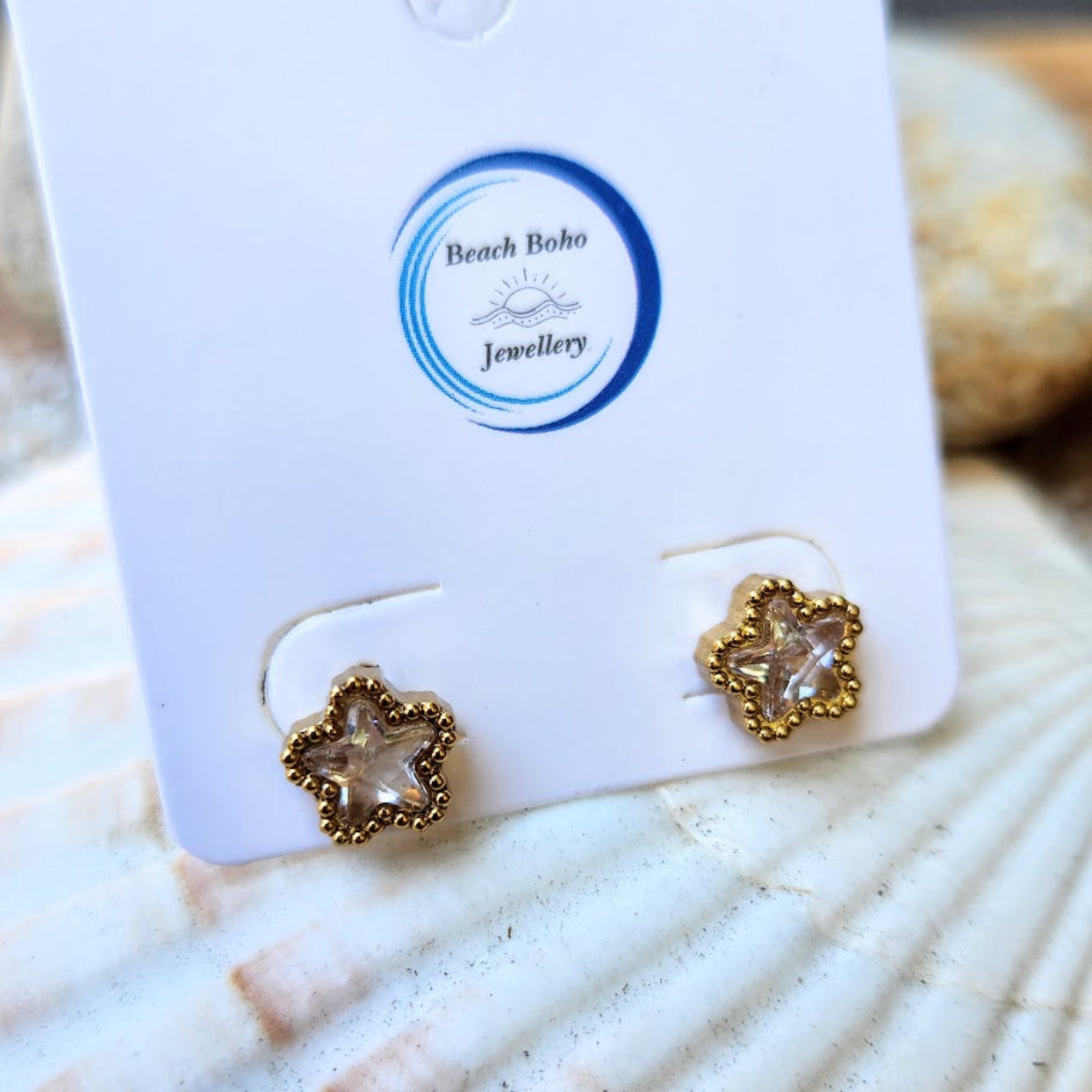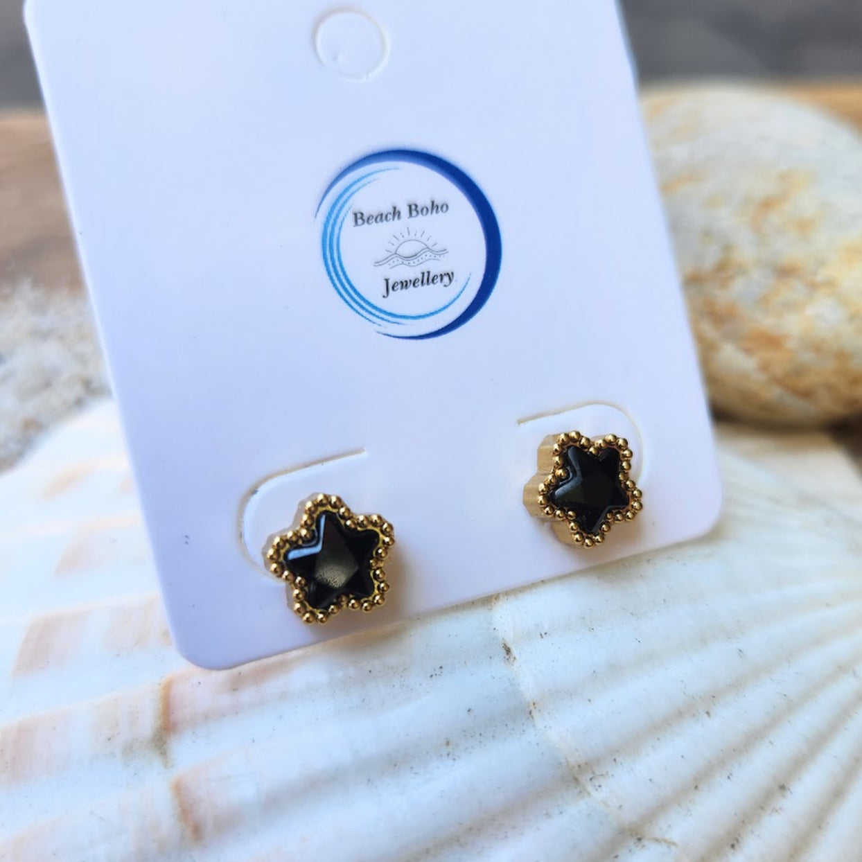 PRETTY FLOWERS - CRYSTAL OR BLACK WATERPROOF STUD EARRINGS