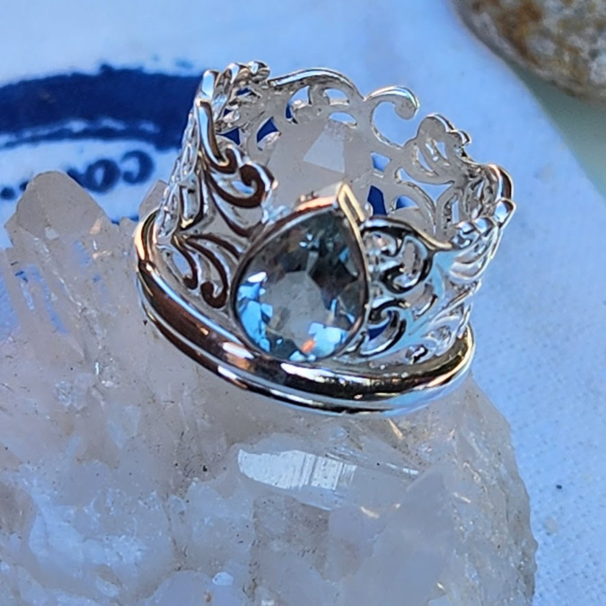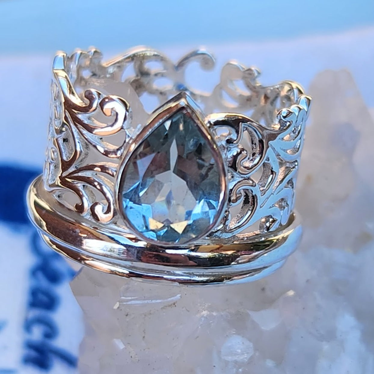 Handcrafted and Designed this Aquamarine 925 Silver Spinner Ring