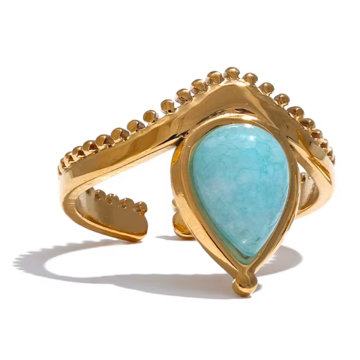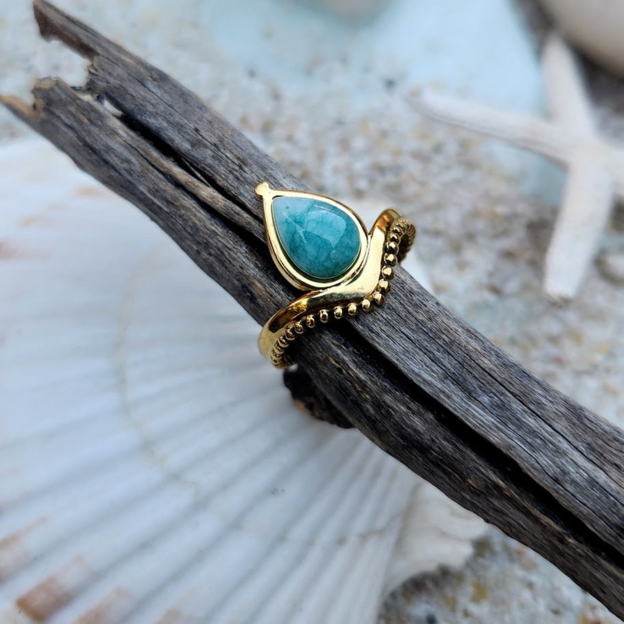 TEAR BLUE - ADJUSTABLE NATURAL AMAZONITE WATERPROOF 18K GOLD RING