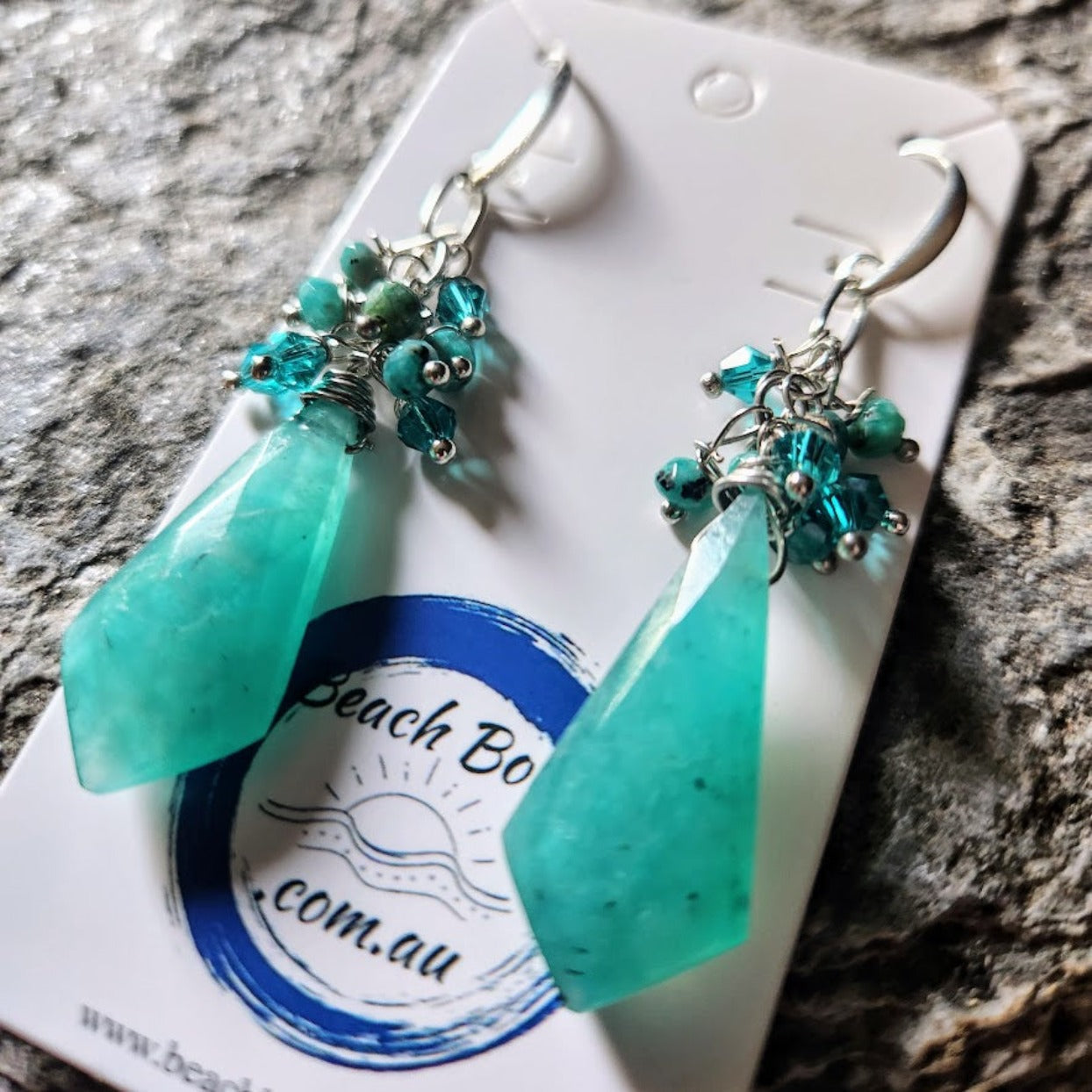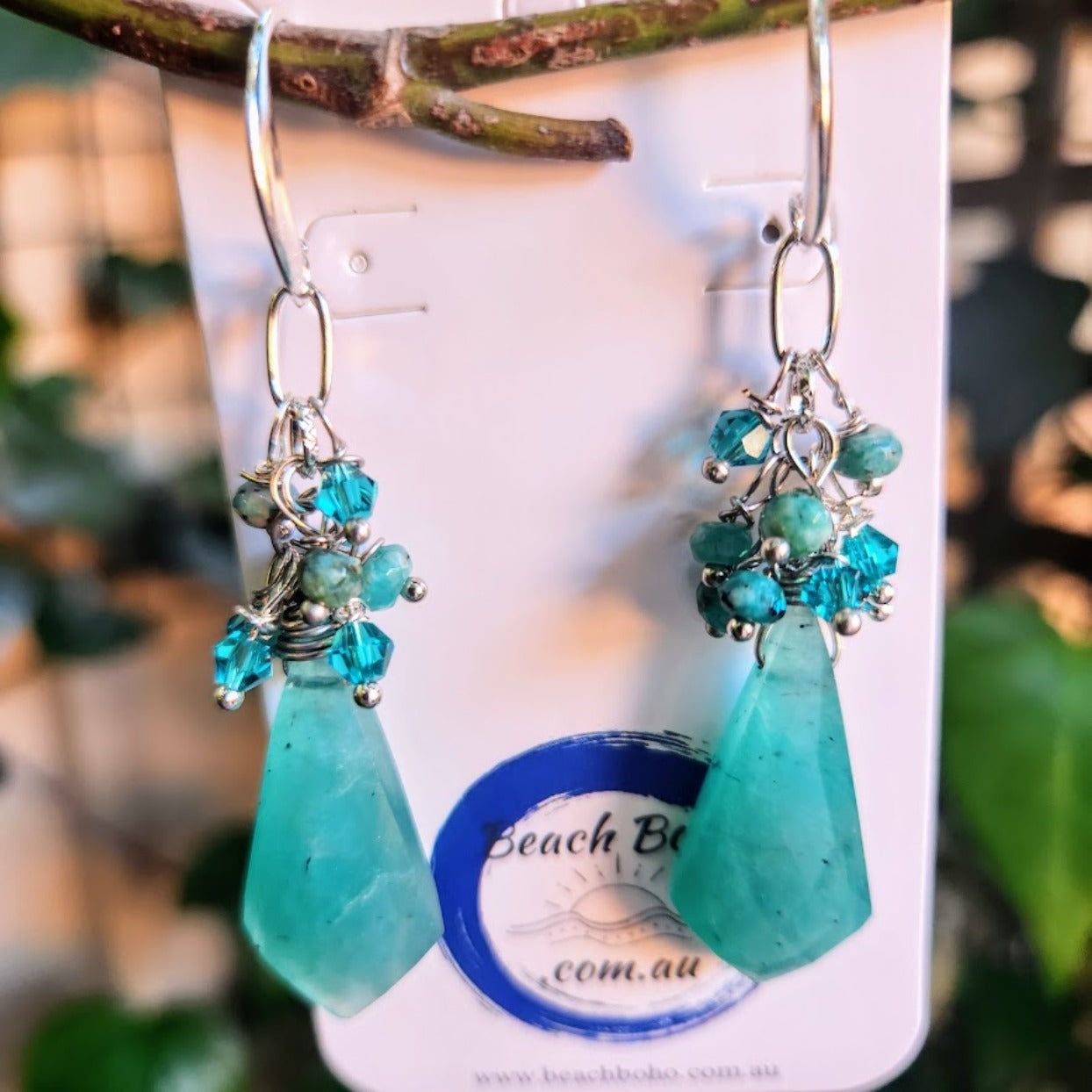 Handmade Artisan Natural Stone Faceted Cut Apatite Beaded crystal hook silver earrings / Swarovski Crystals
