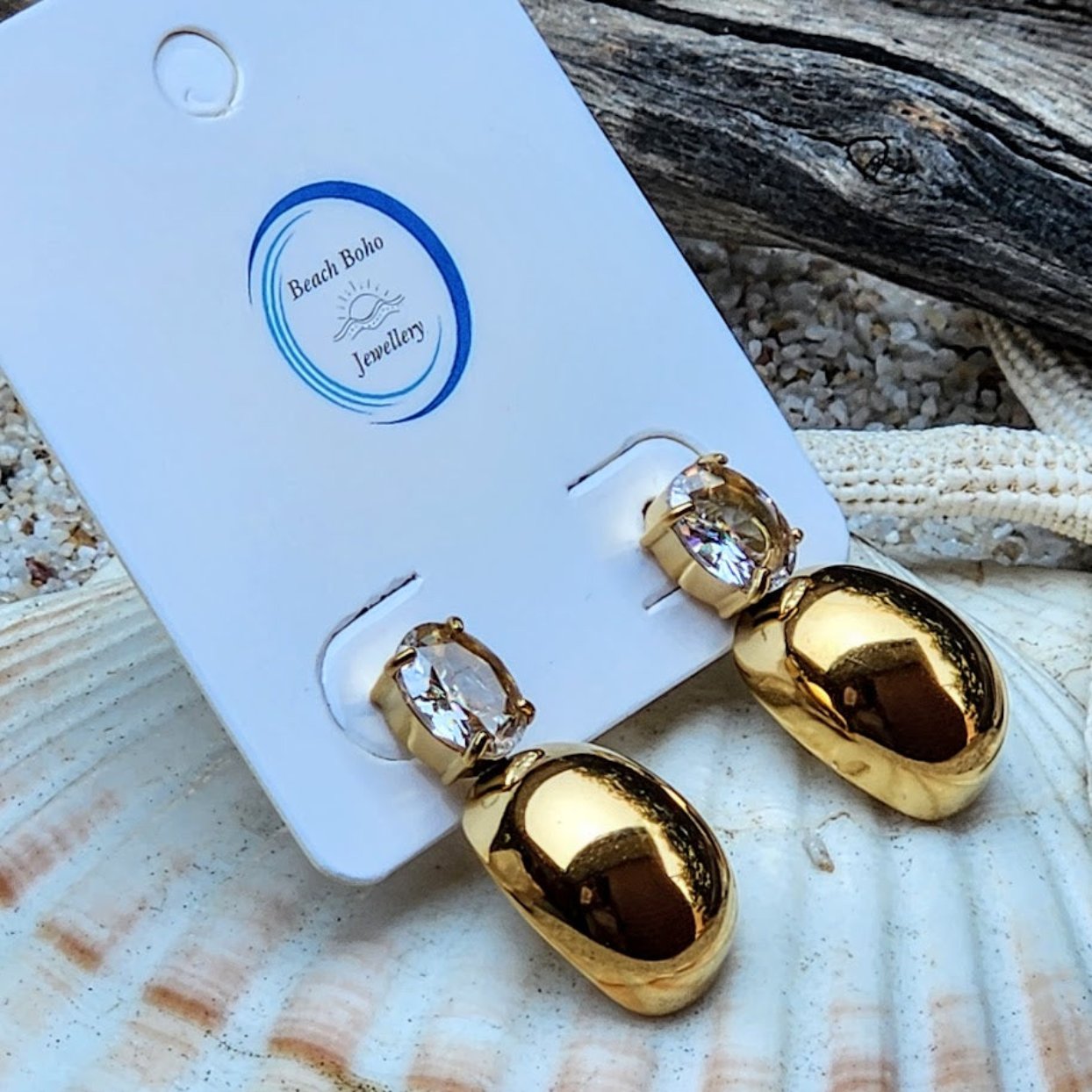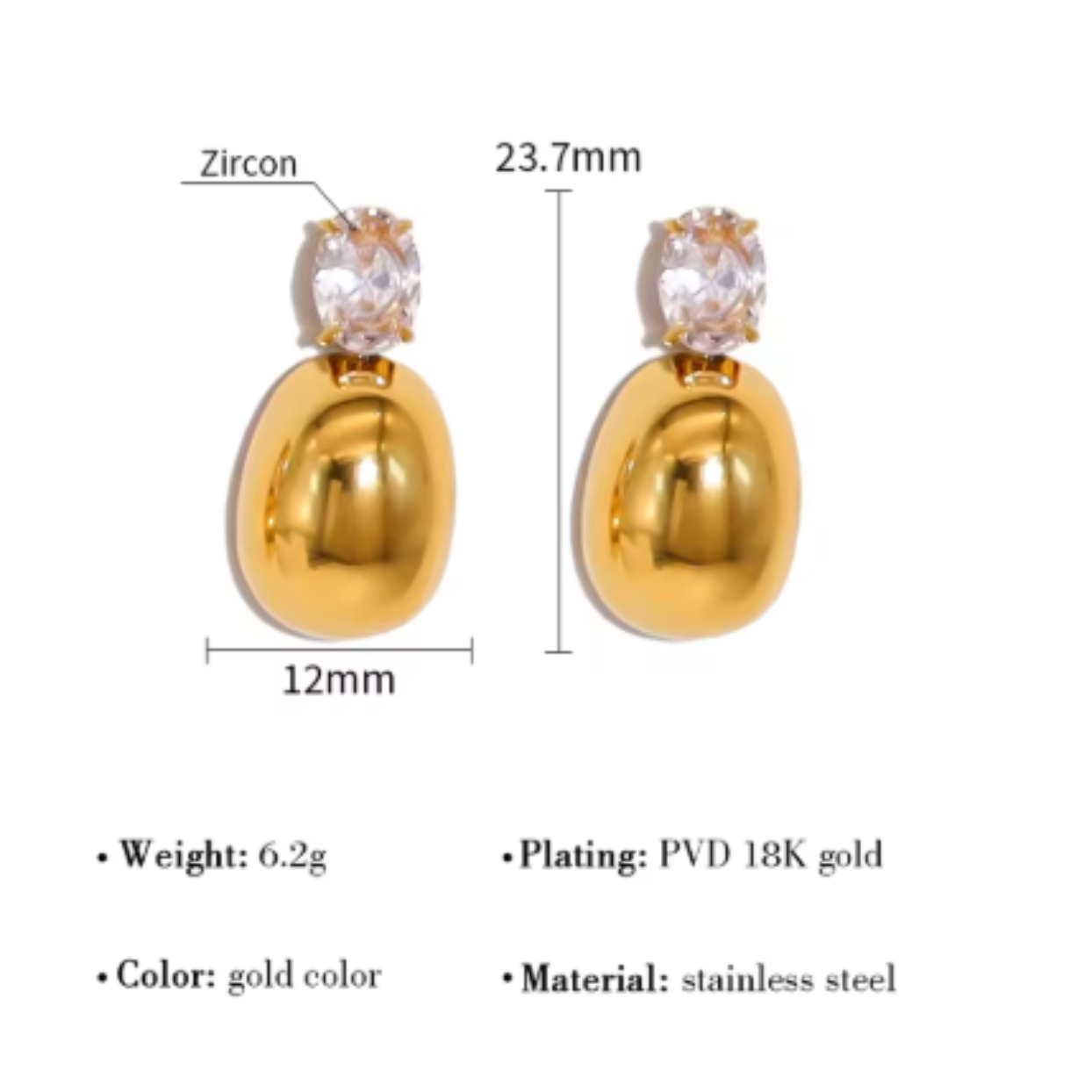 Cubic Zirconia Stunning Stud Earrings 18k Gold Plated 2.23 cm length 1.2 cm width