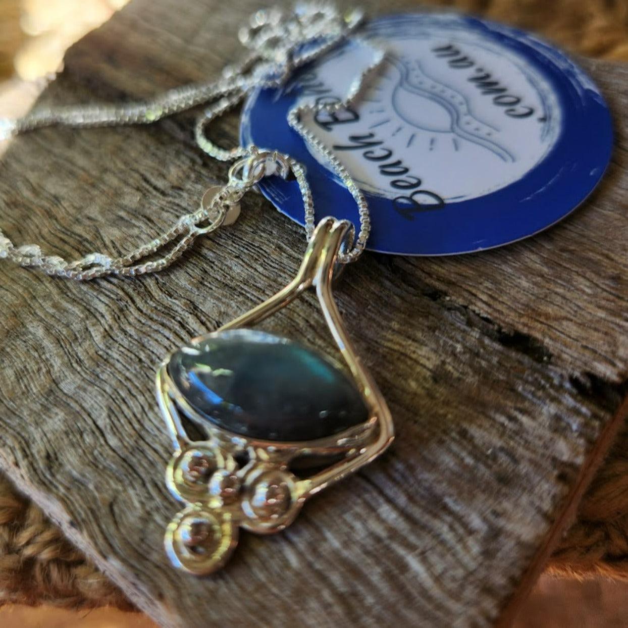 Truly Stunning Eye Shaped Labradorite Pendant set in a stunning 925 Sterling Silver Setting