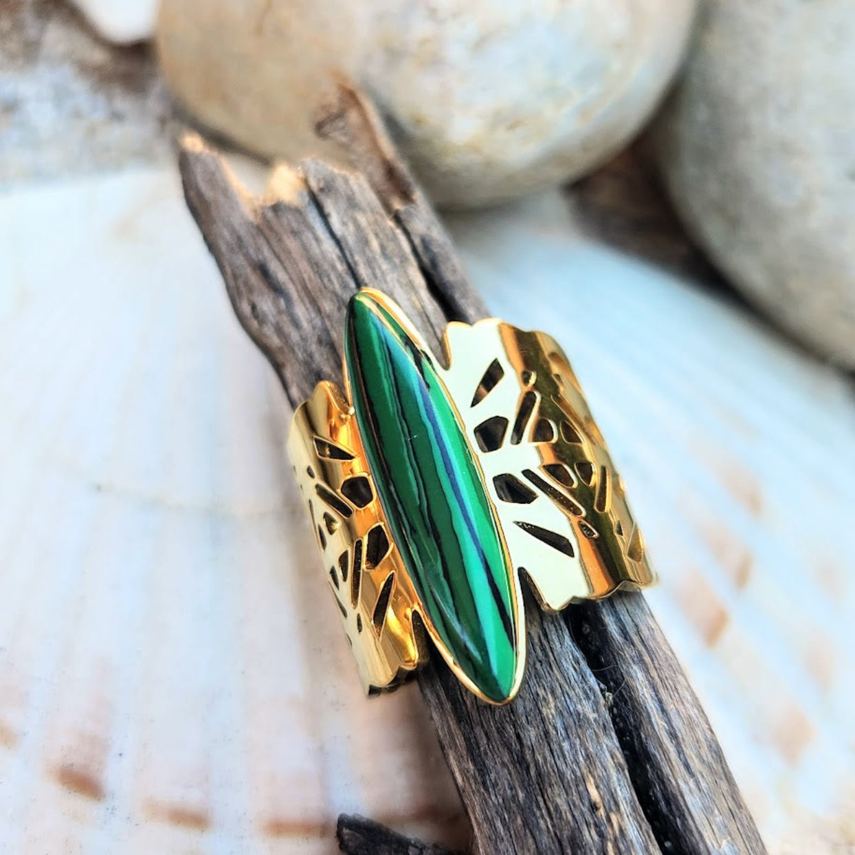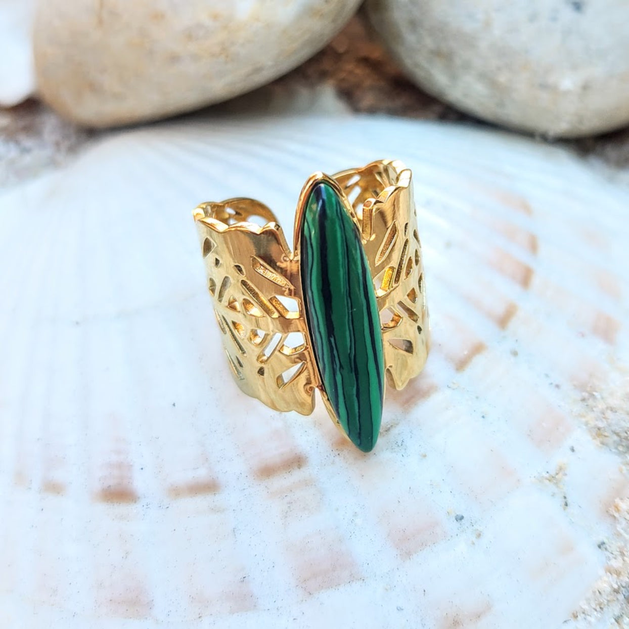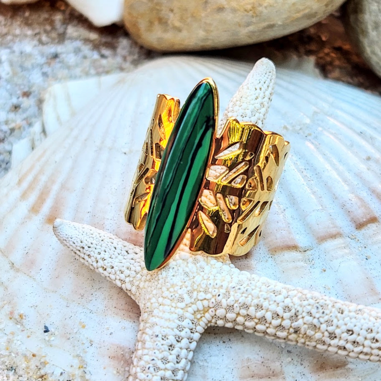 ESSENCE OF JOY - ADJUSTABLE TURQUOISE OR MALACHITE WATERPROOF 18K GOLD RINGS