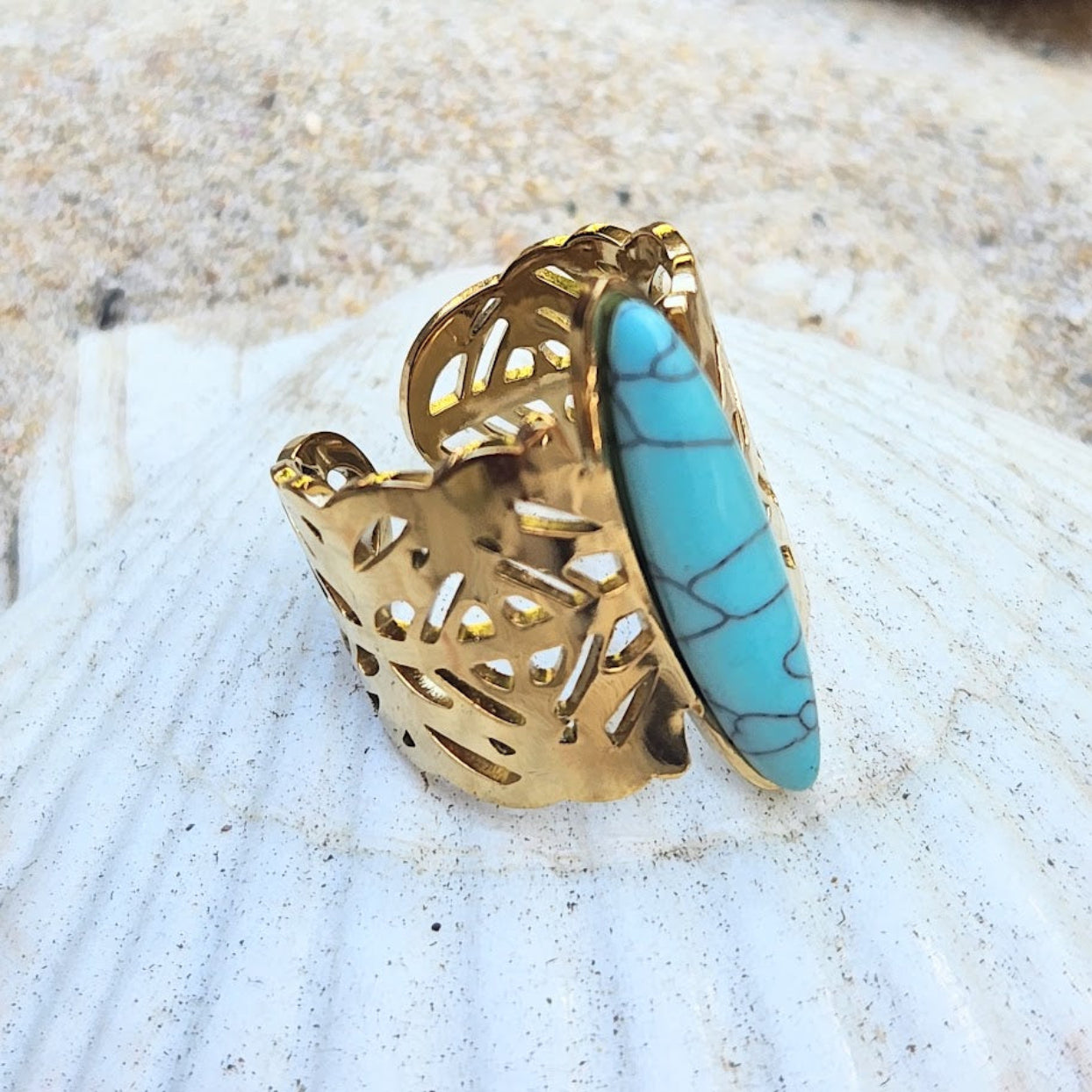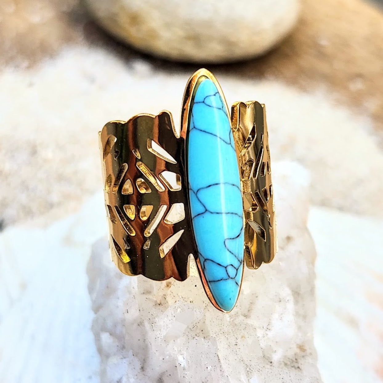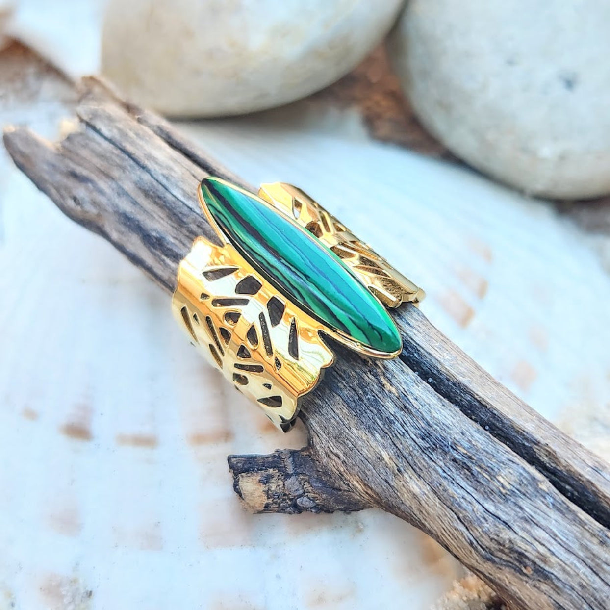 ESSENCE OF JOY - ADJUSTABLE TURQUOISE OR MALACHITE WATERPROOF 18K GOLD RINGS
