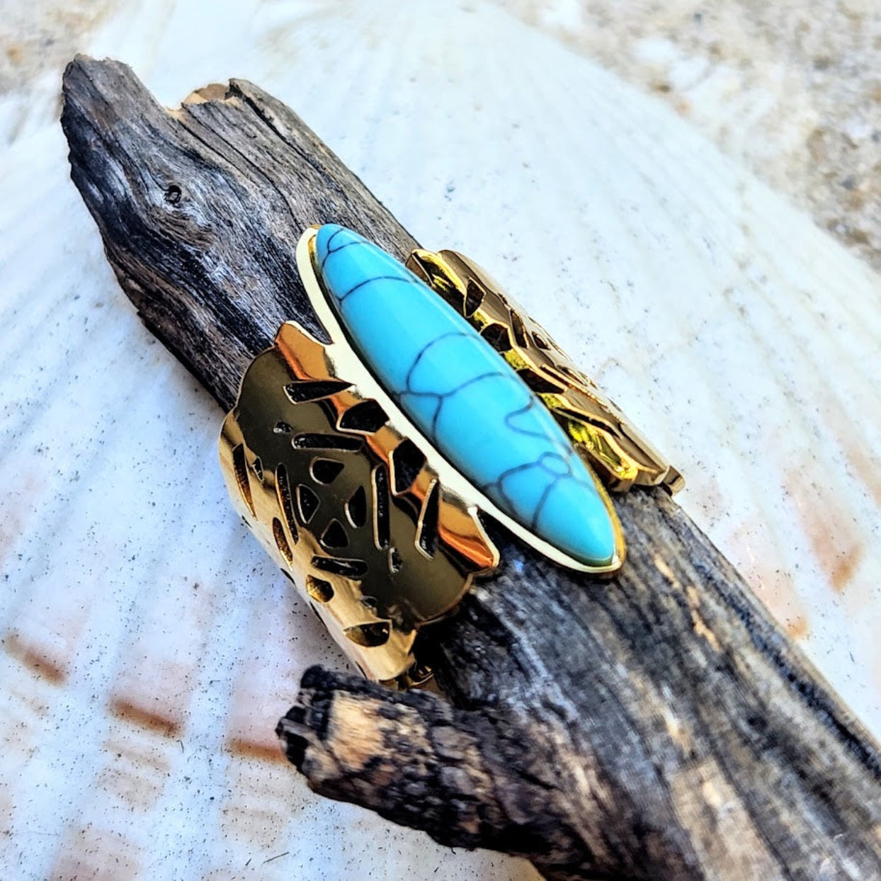 Adjustable Butterfly Design with stunning long Malachite or Turquoise Stone Statement Rings