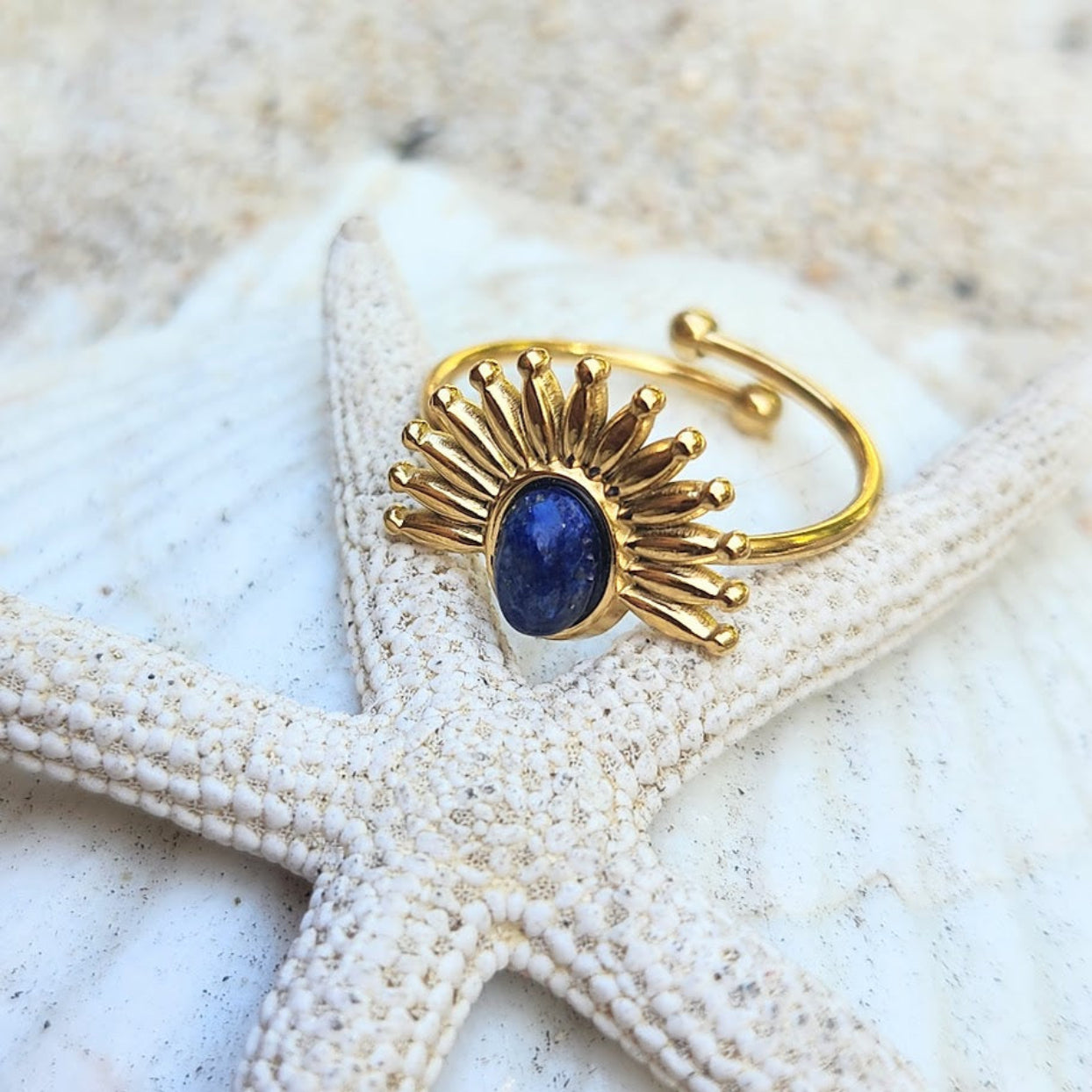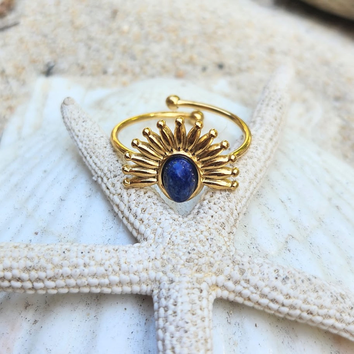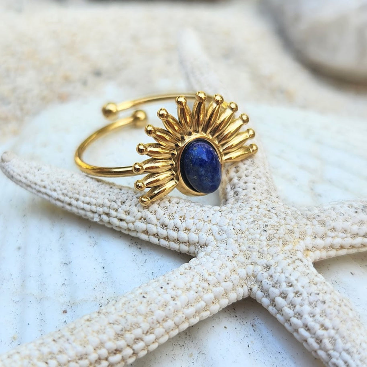 DEEP BLUE - ADJUSTABLE 18K GOLD LAPIS LAZULI STONE WATERPROOF RING