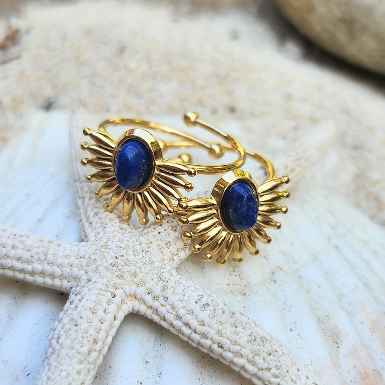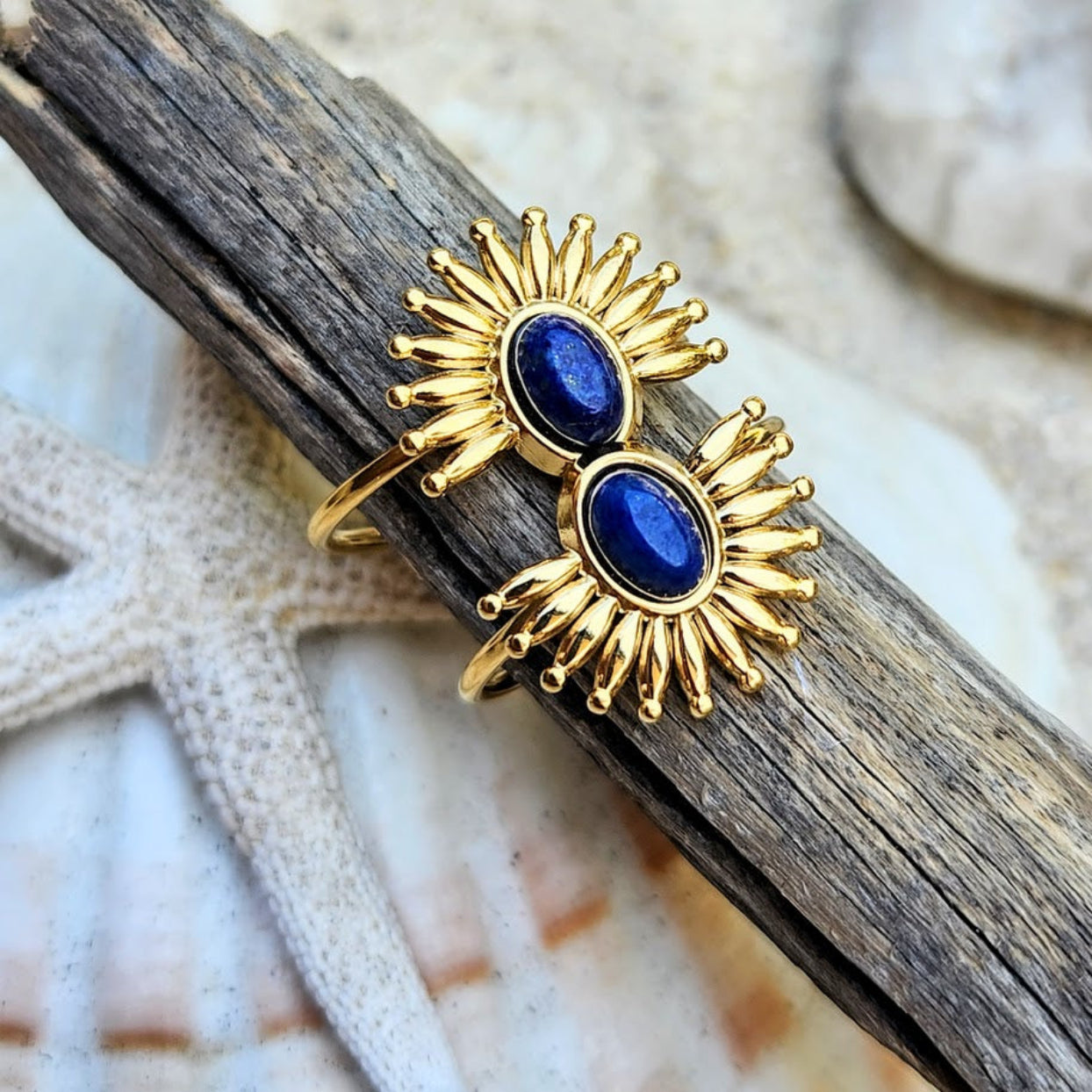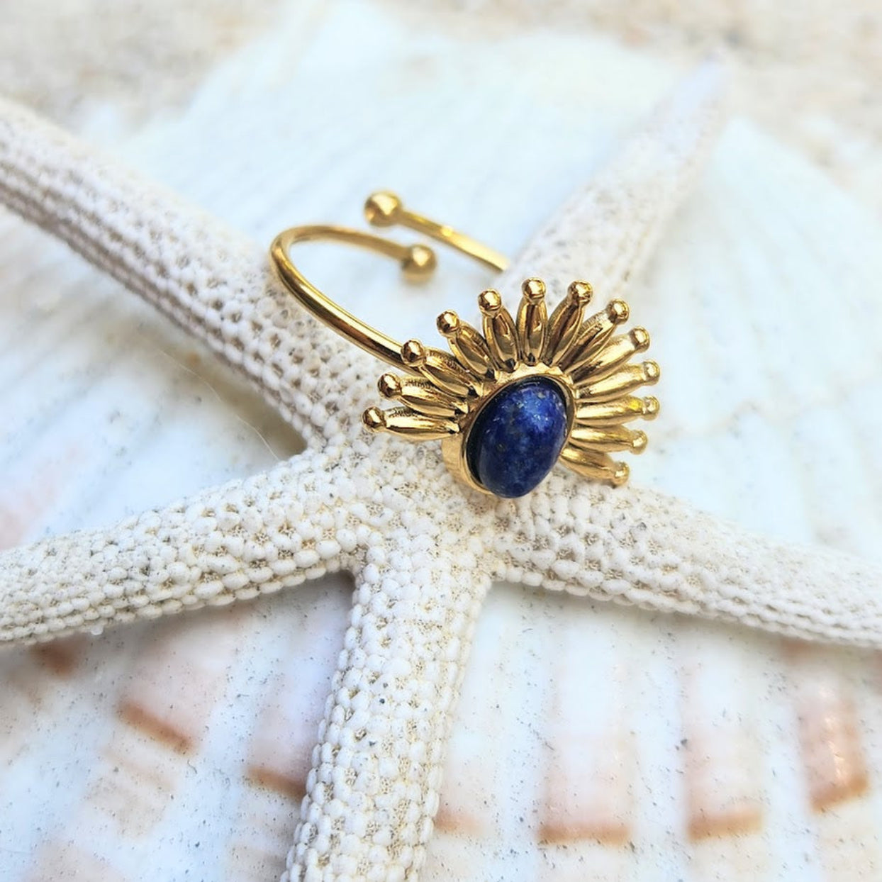 DEEP BLUE - ADJUSTABLE 18K GOLD LAPIS LAZULI STONE WATERPROOF RING