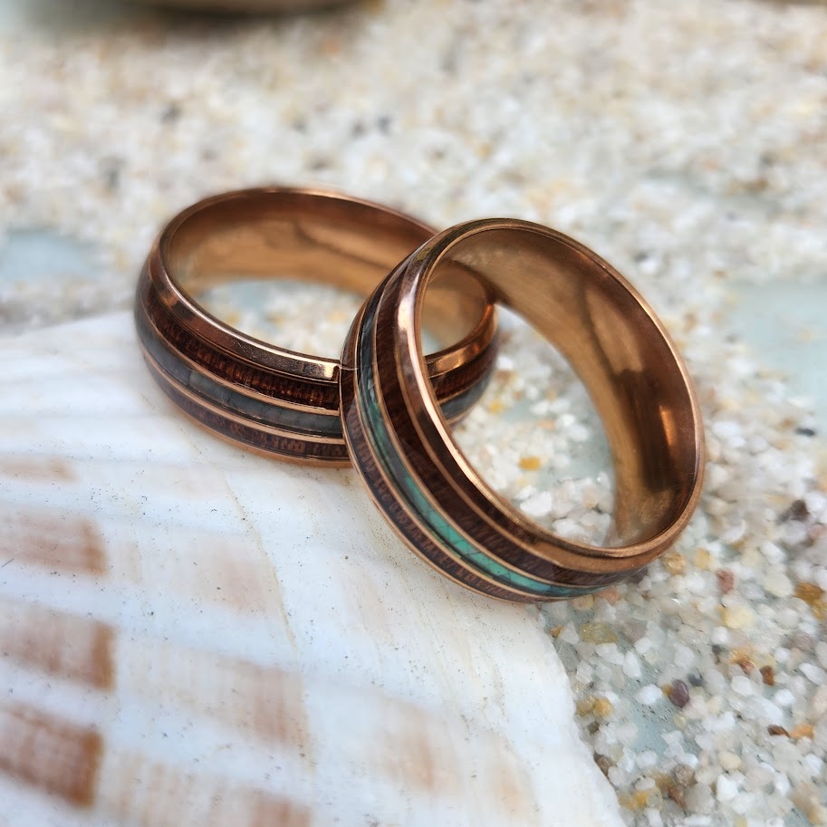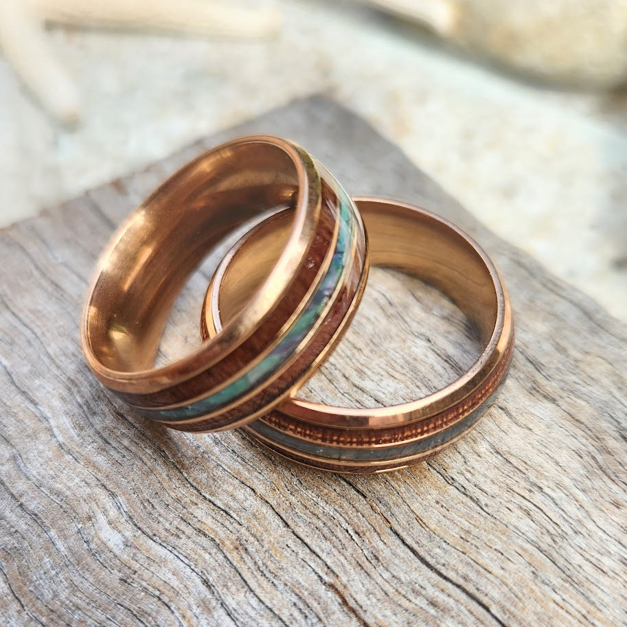 ROSE GOLD - PAUA SHELL & WOOD INLAY WATERPROOF MEN'S RING