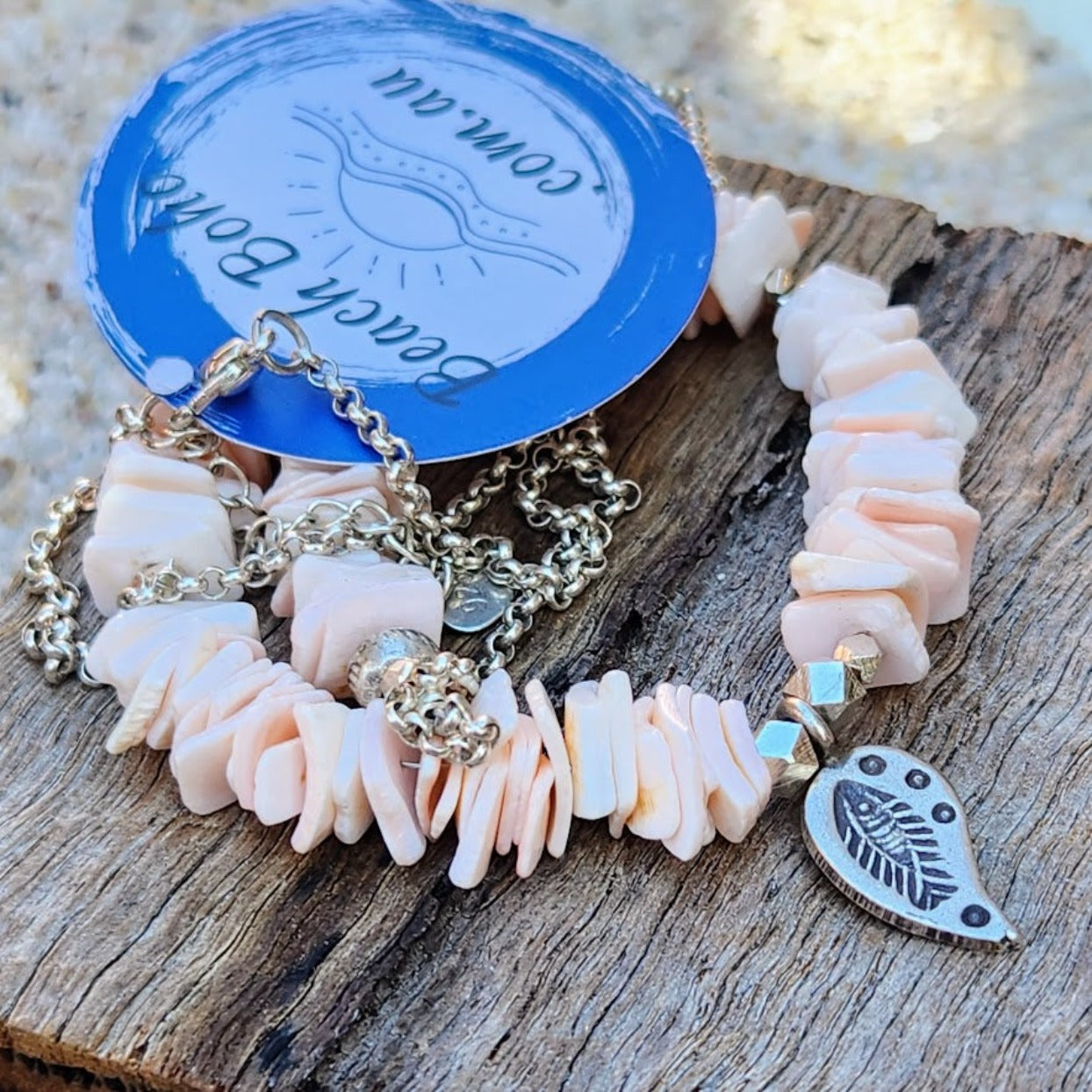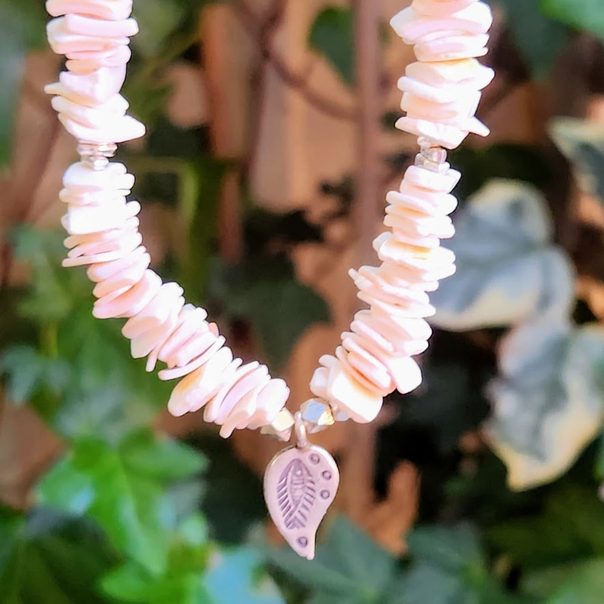 Hilltribe Leaf (Fish Charm) Charm and Hilltribe Leaf Charm / Natural Shell Necklace