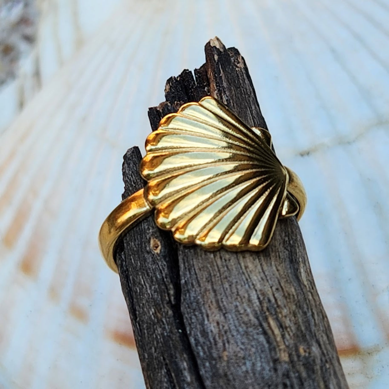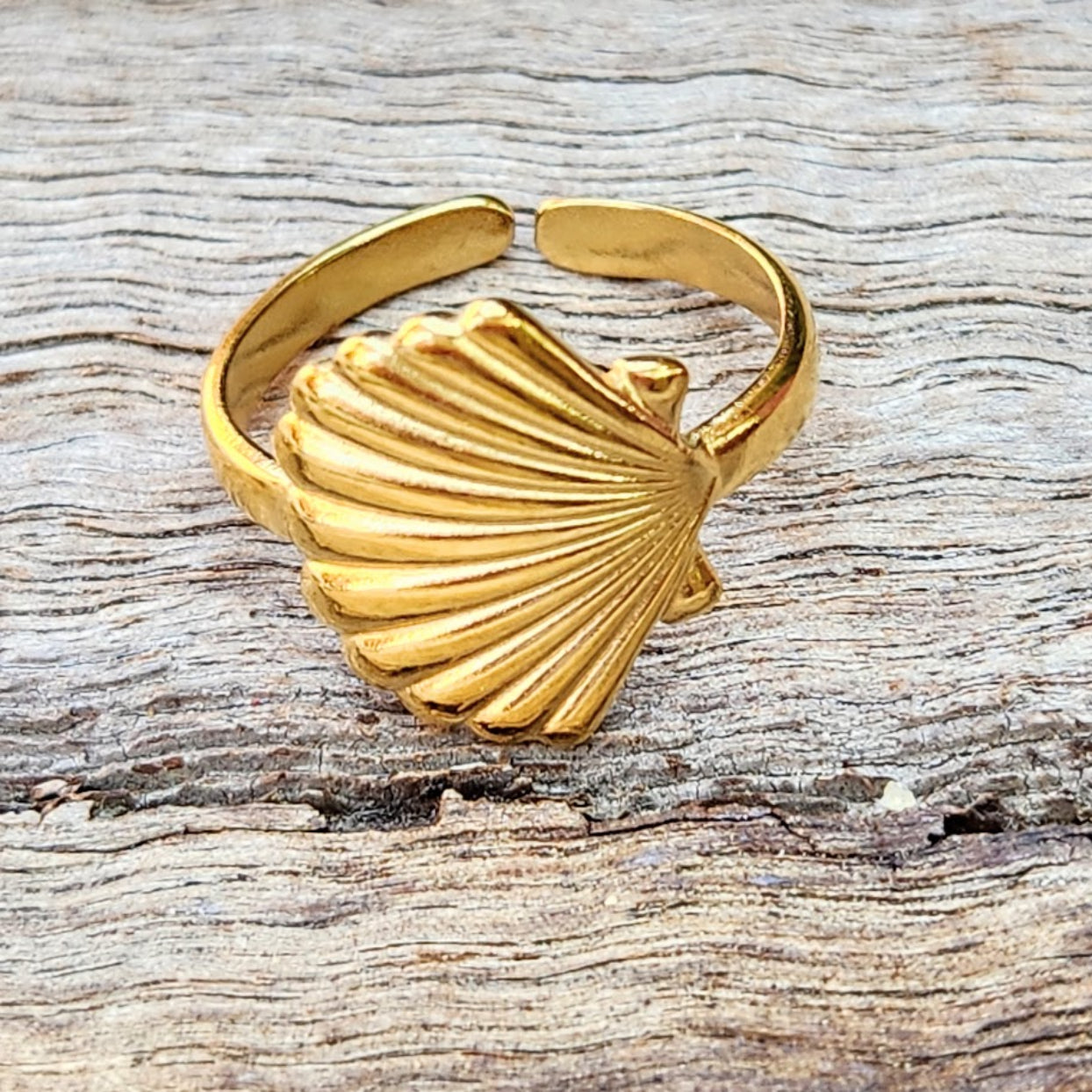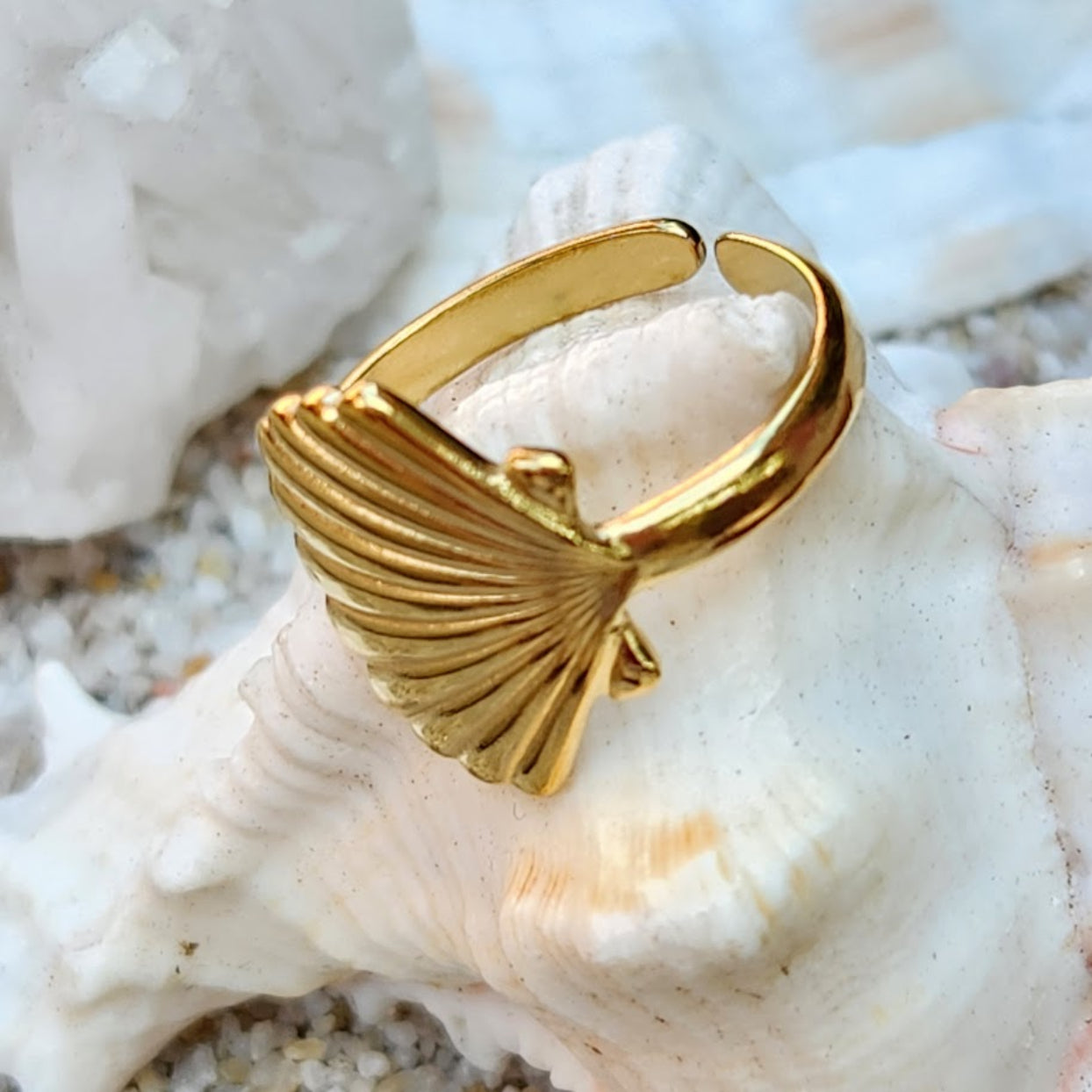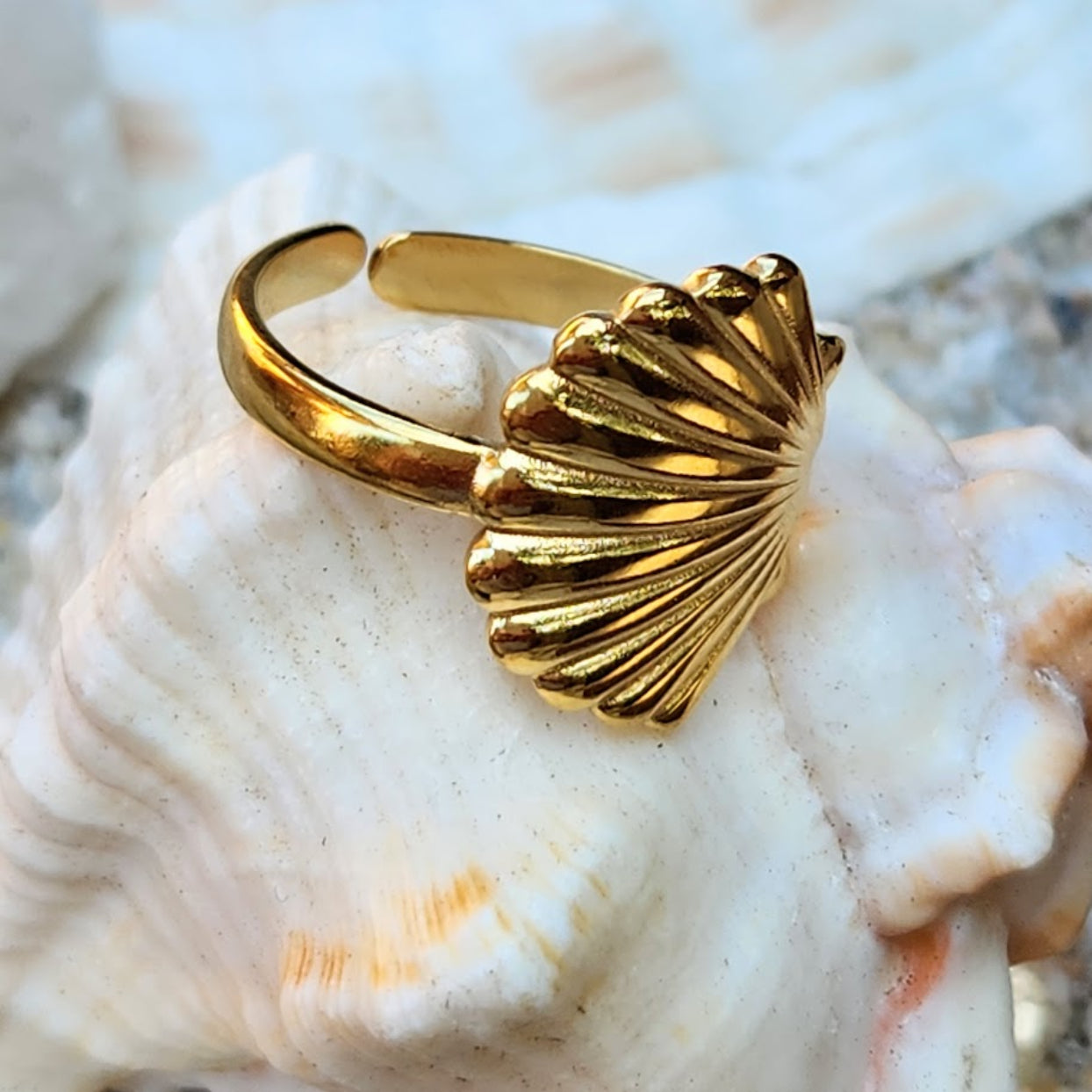 Stunning substantial 18k Gold plated Adjustable Shell Charm Ring which is easily adjustable