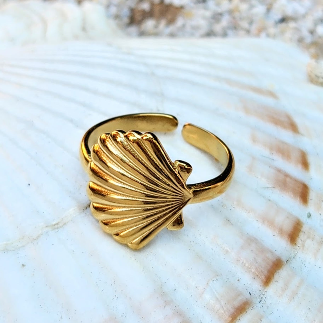 SIMPLY SHELL - ADJUSTABLE WATERPROOF SHELL 18K GOLD RINGS