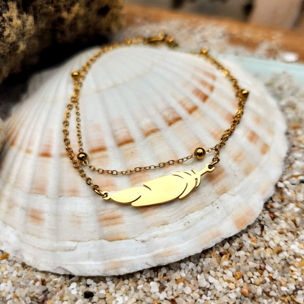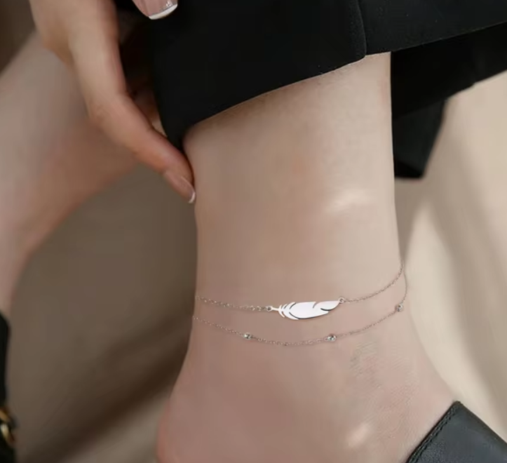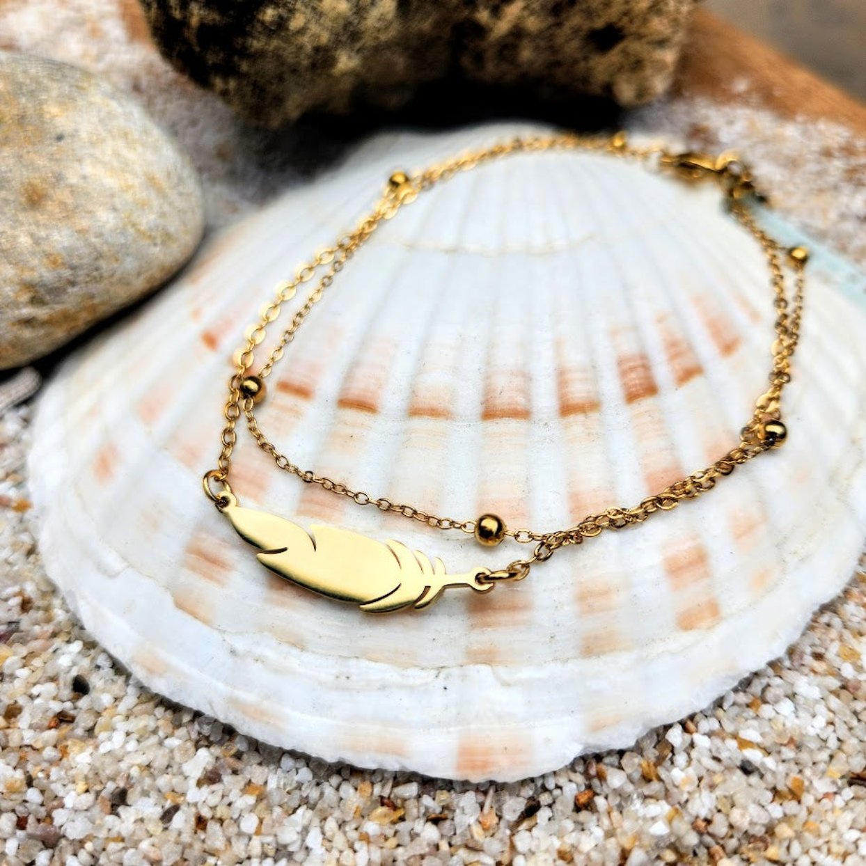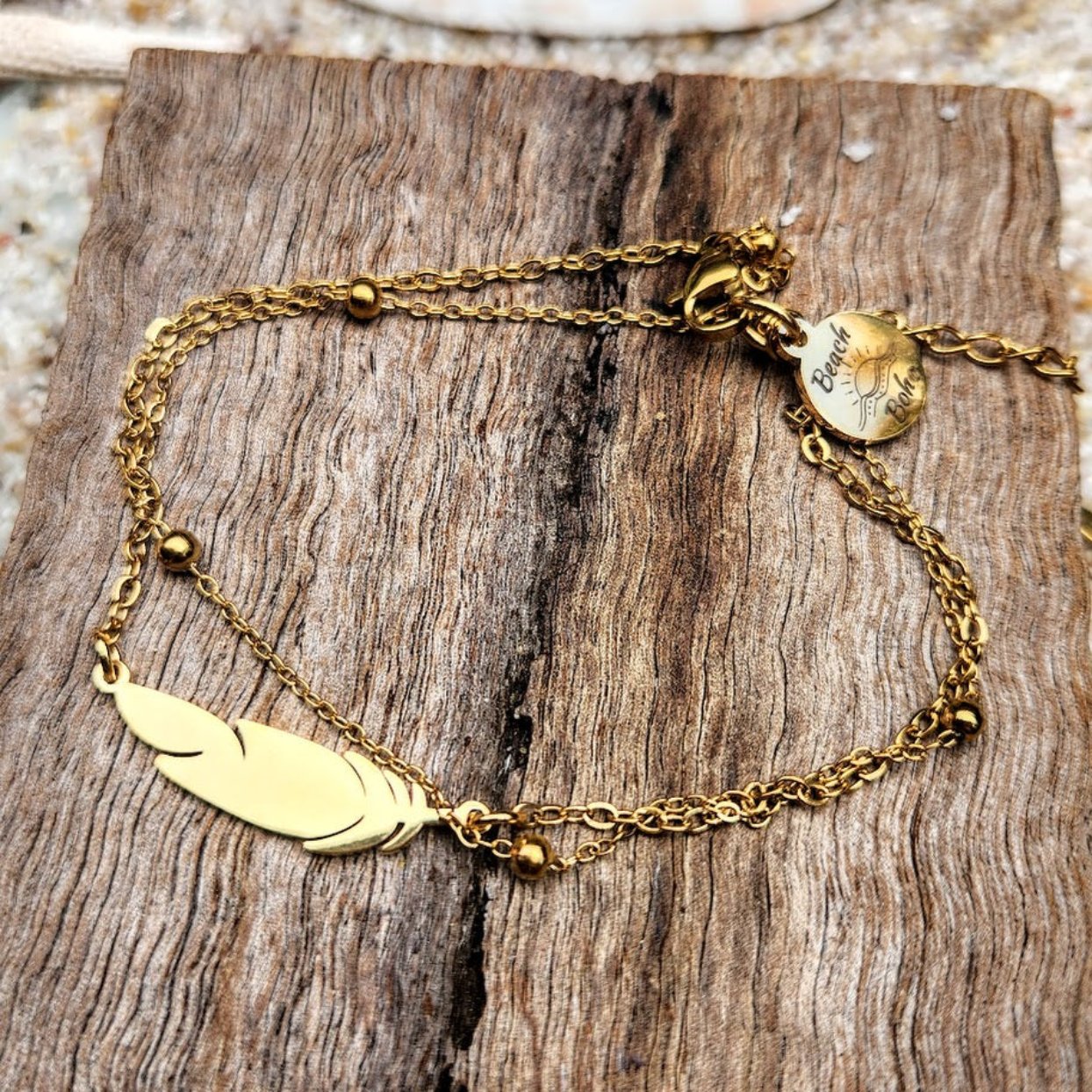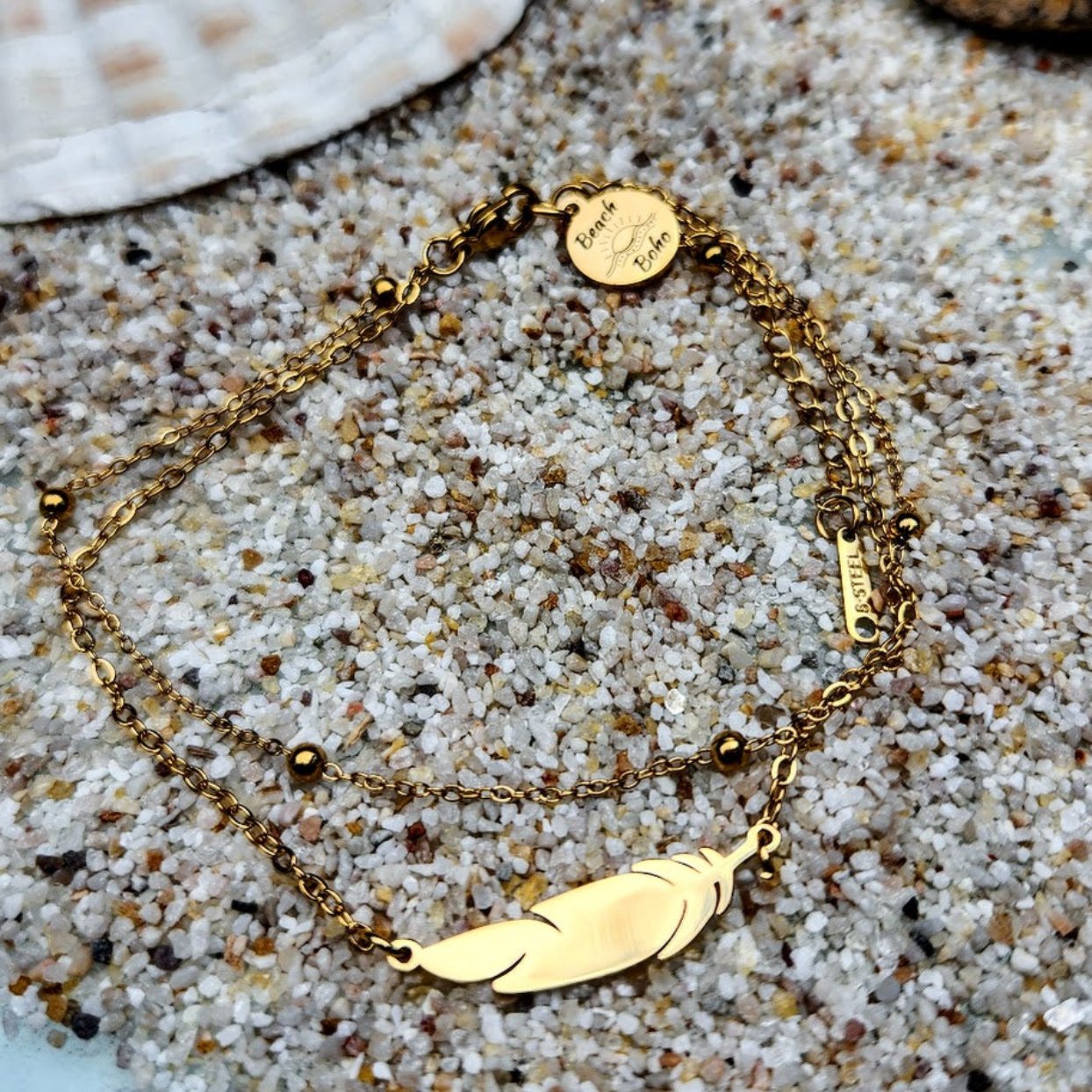 DOUBLE LEAF- SATURN CHAIN DOUBLE GOLD OR SILVER WATERPROOF ANKLET
