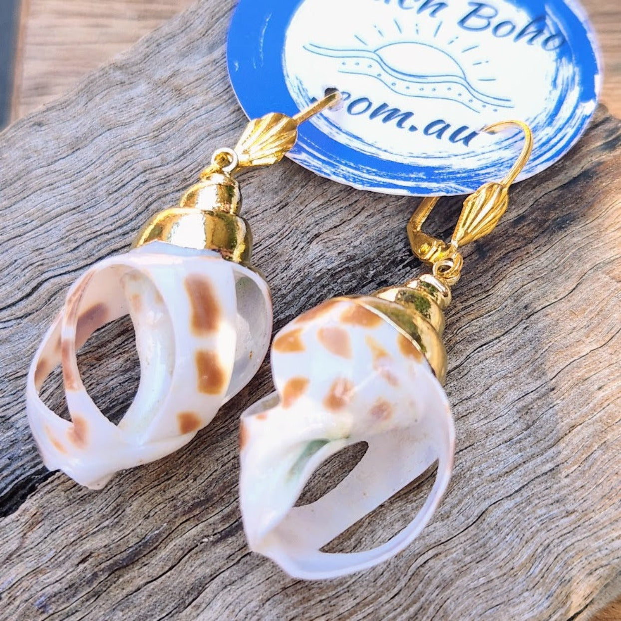 SPECKLED SHELLS - GOLD HOOK BOHO EARRINGS
