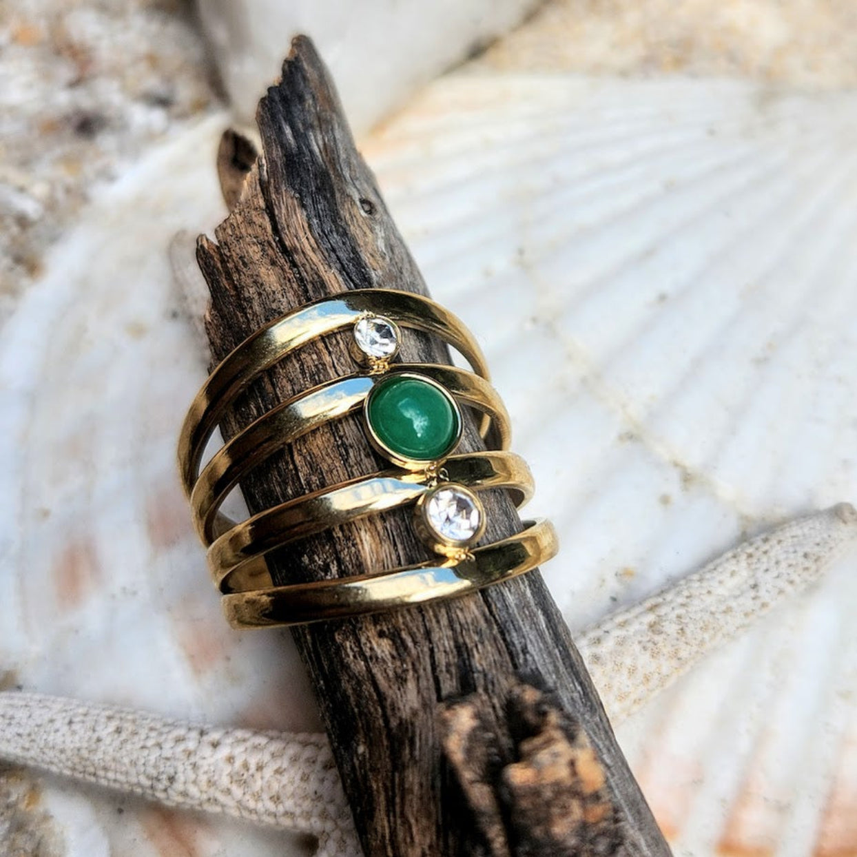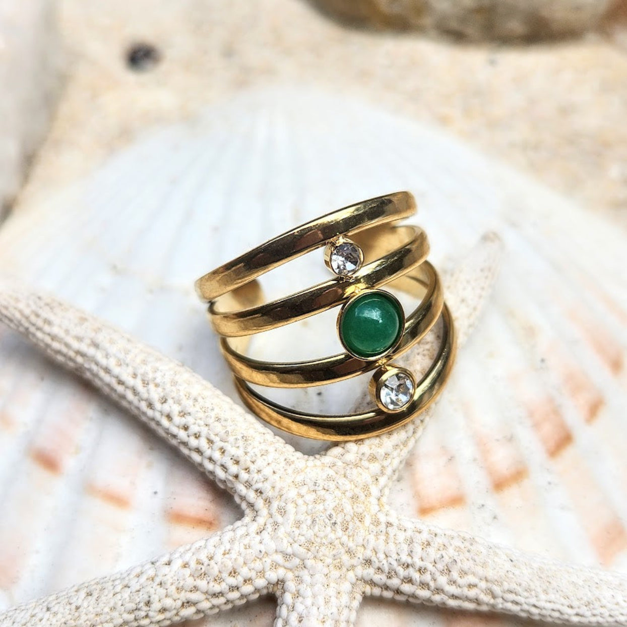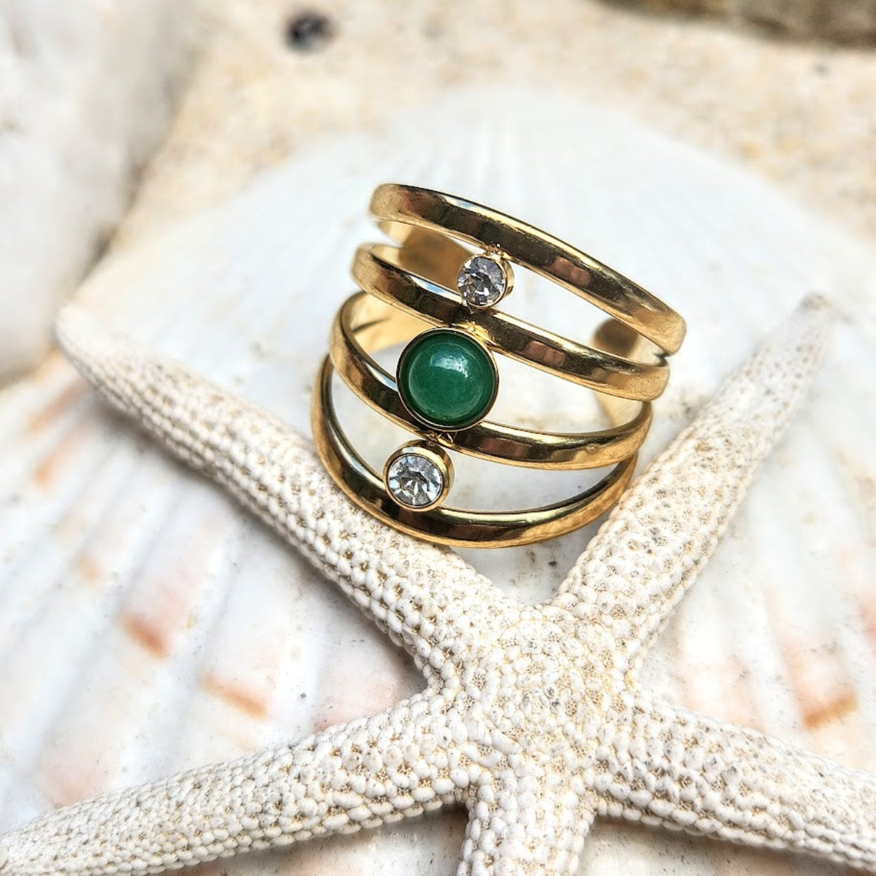 Adjustable Layered Four Banded Tiger Eye Stone or Aventurine & Cubic Zirconia Ring