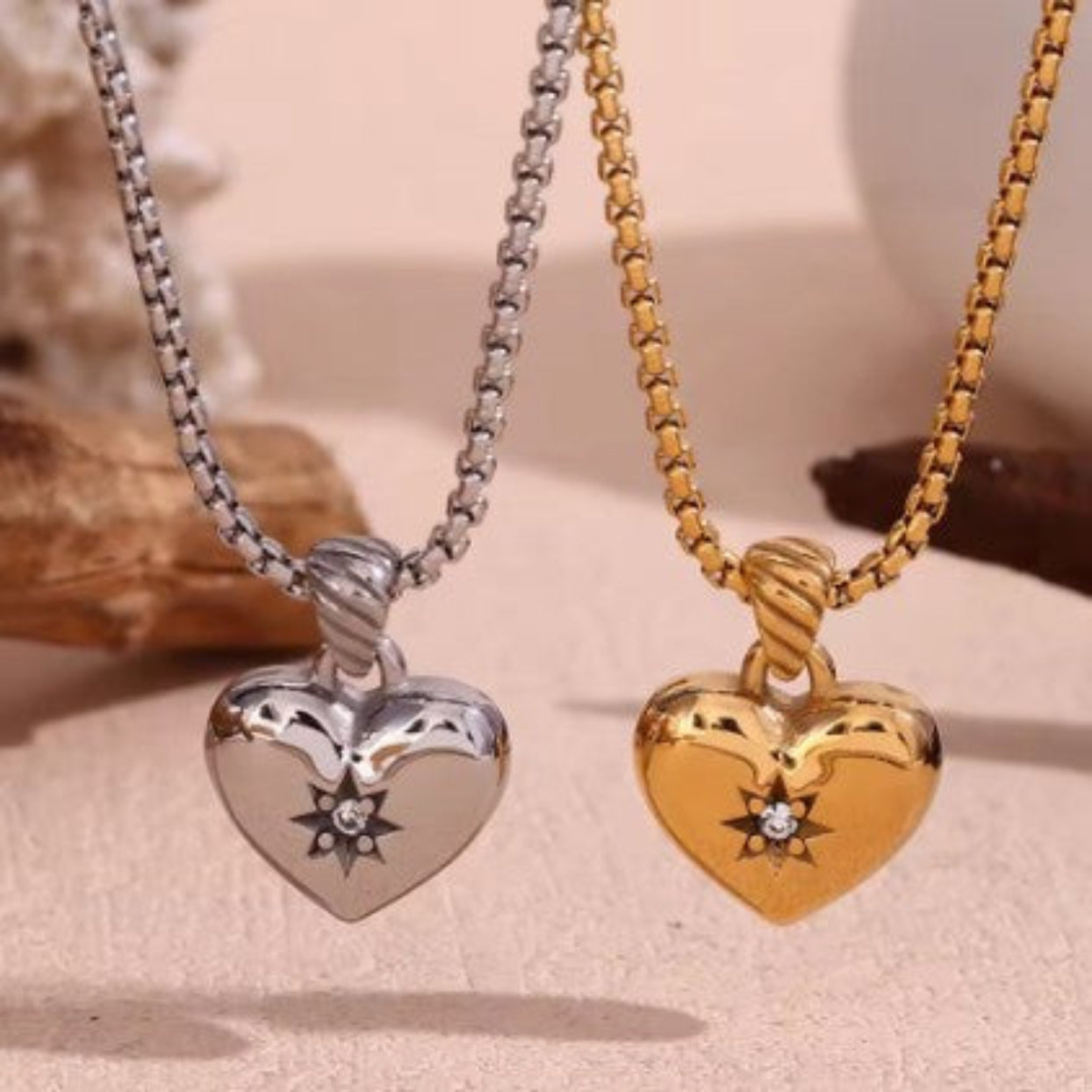 DIAMOND HEARTS - 18K GOLD & SILVER HEART WATERPROOF NECKLACE