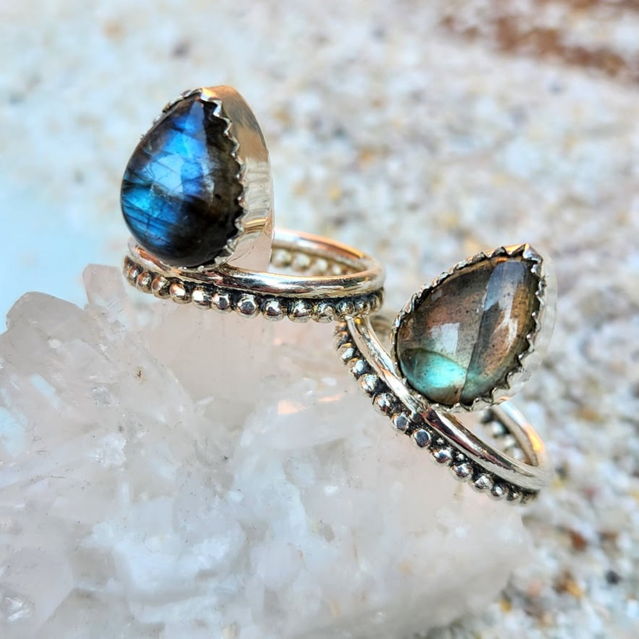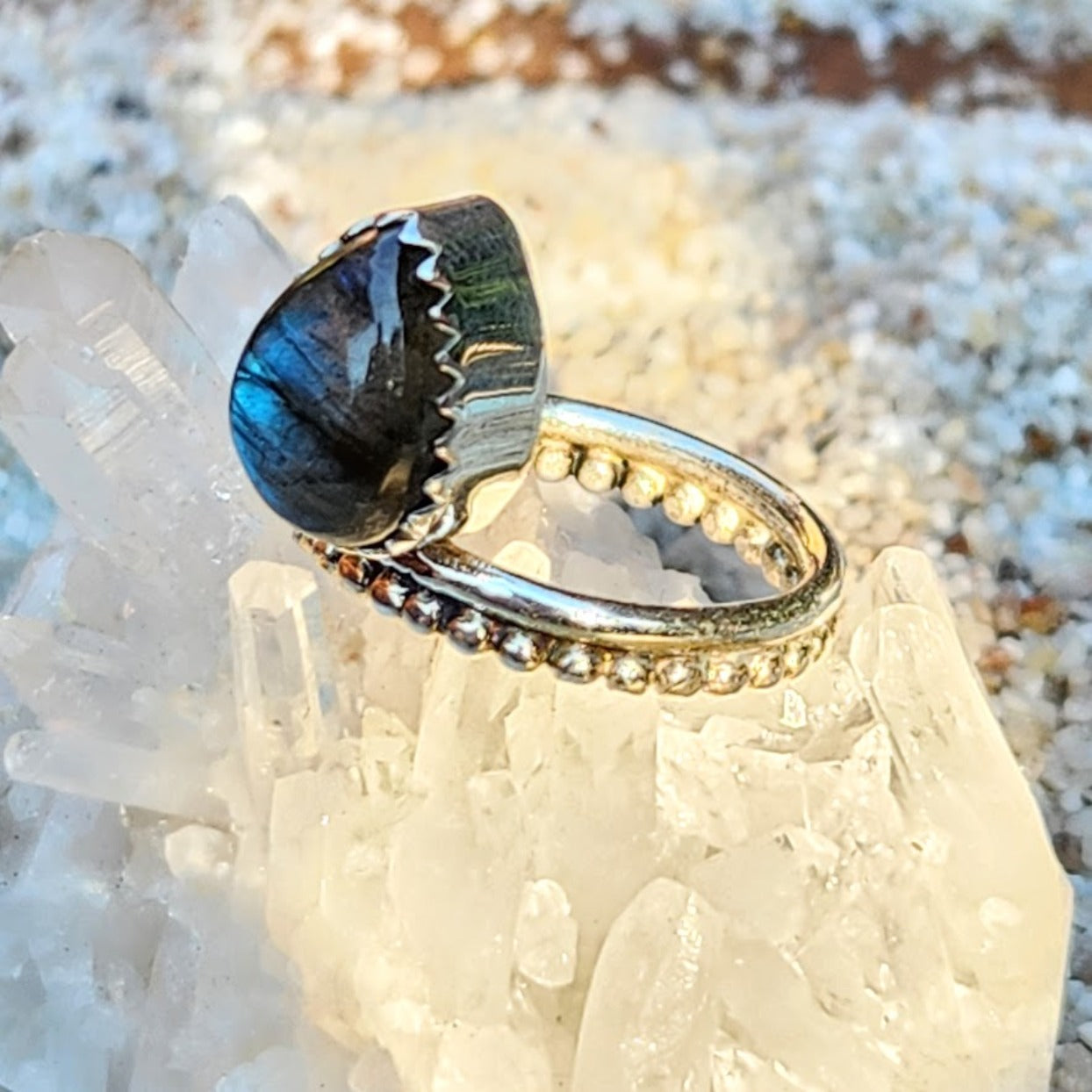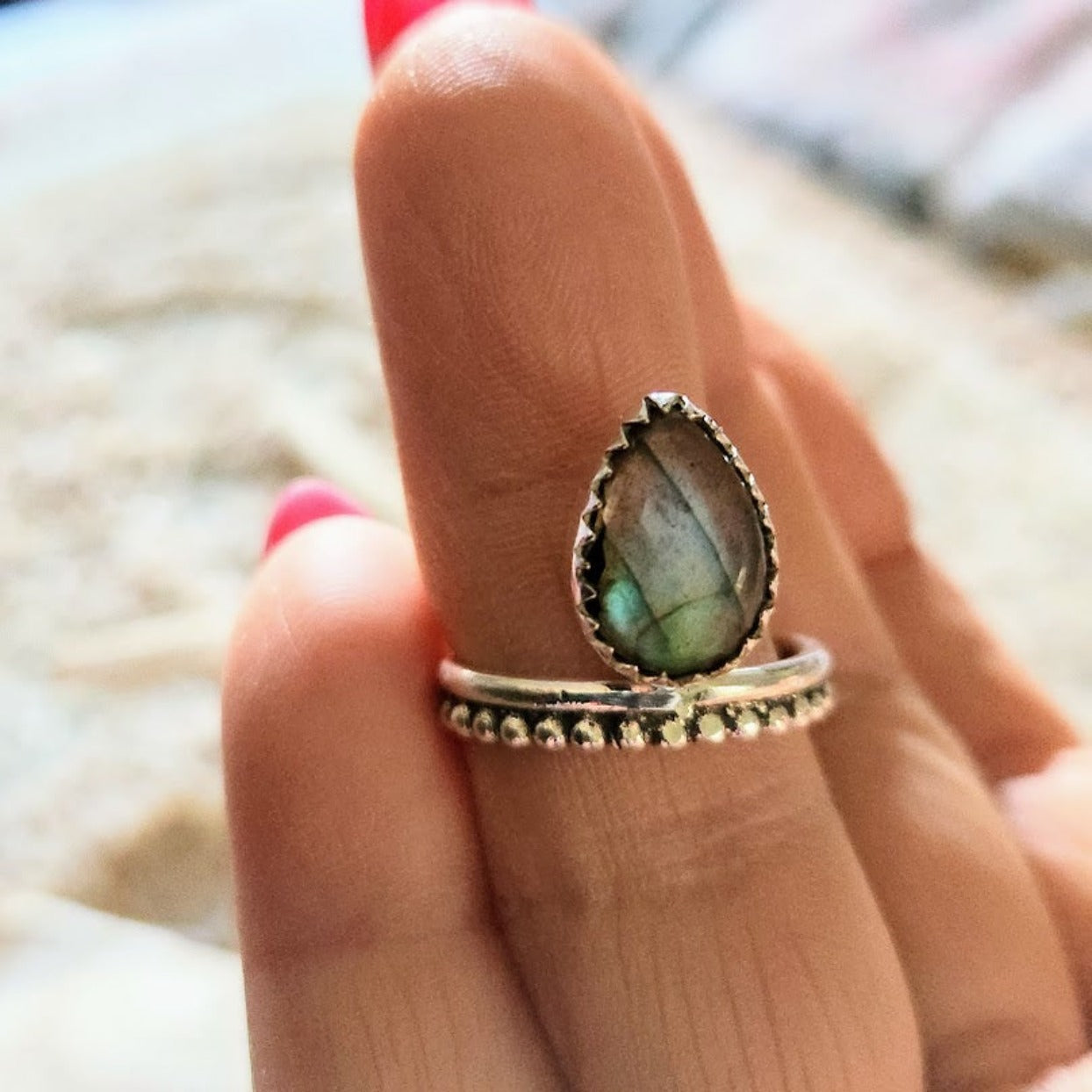 Labradorite Teardrop Beaded Detail 925 Sterling Silver Ring