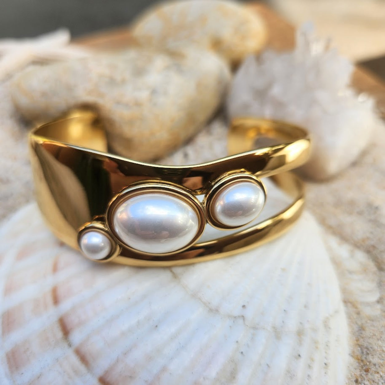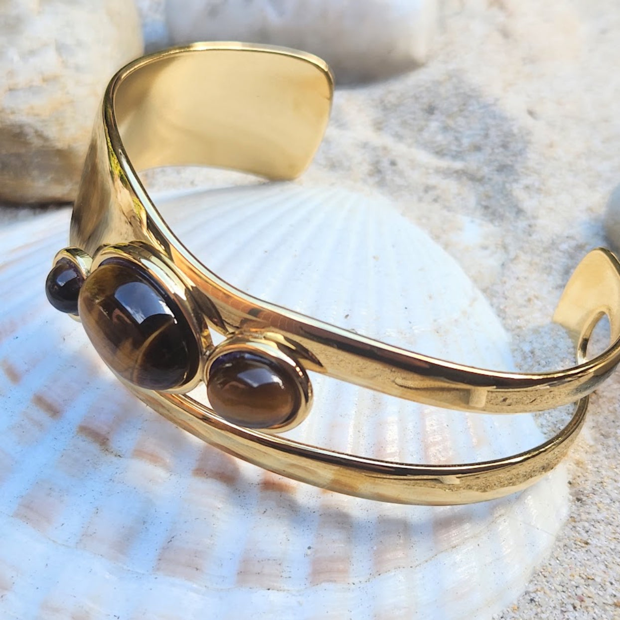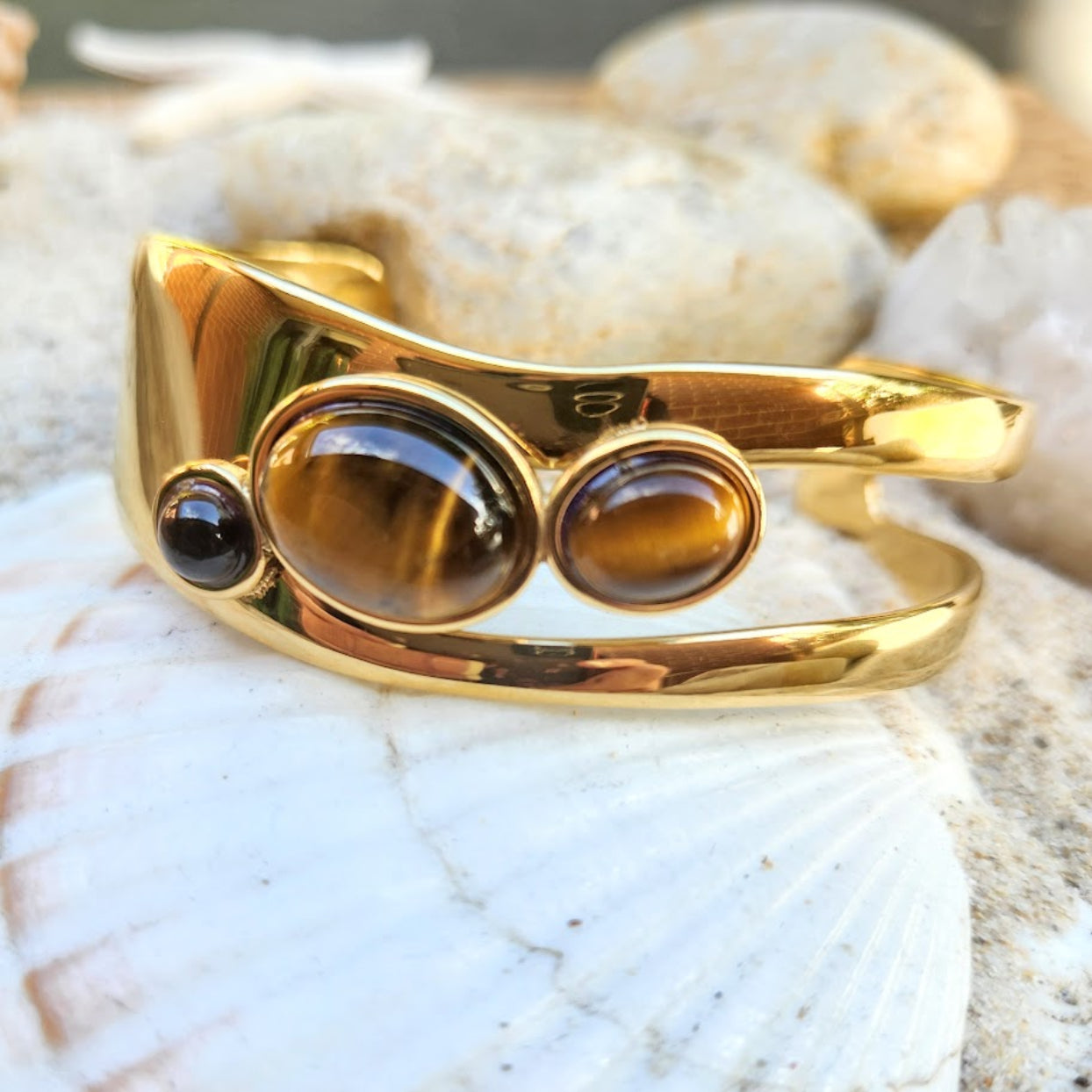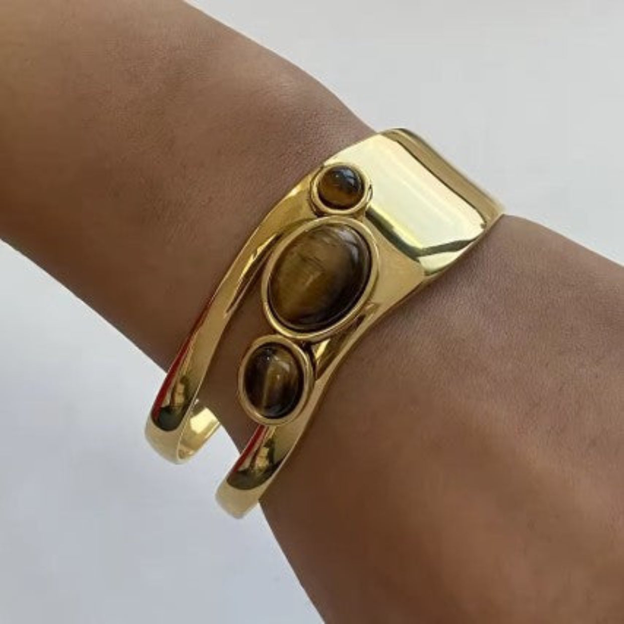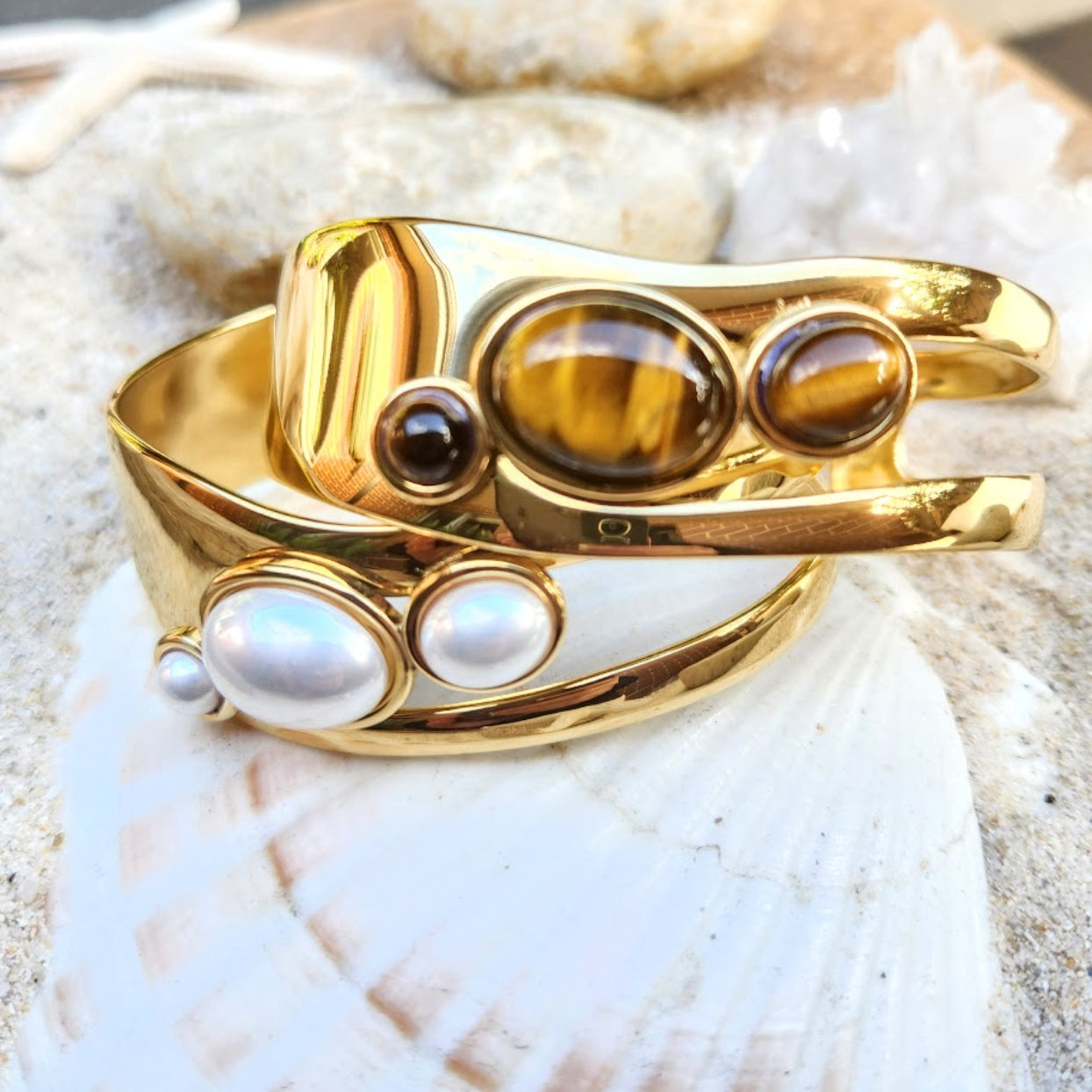 YOU AND THREE - 18 CT GOLD WATERPROOF TIGER EYE OR PEARL CUFF BRACELET