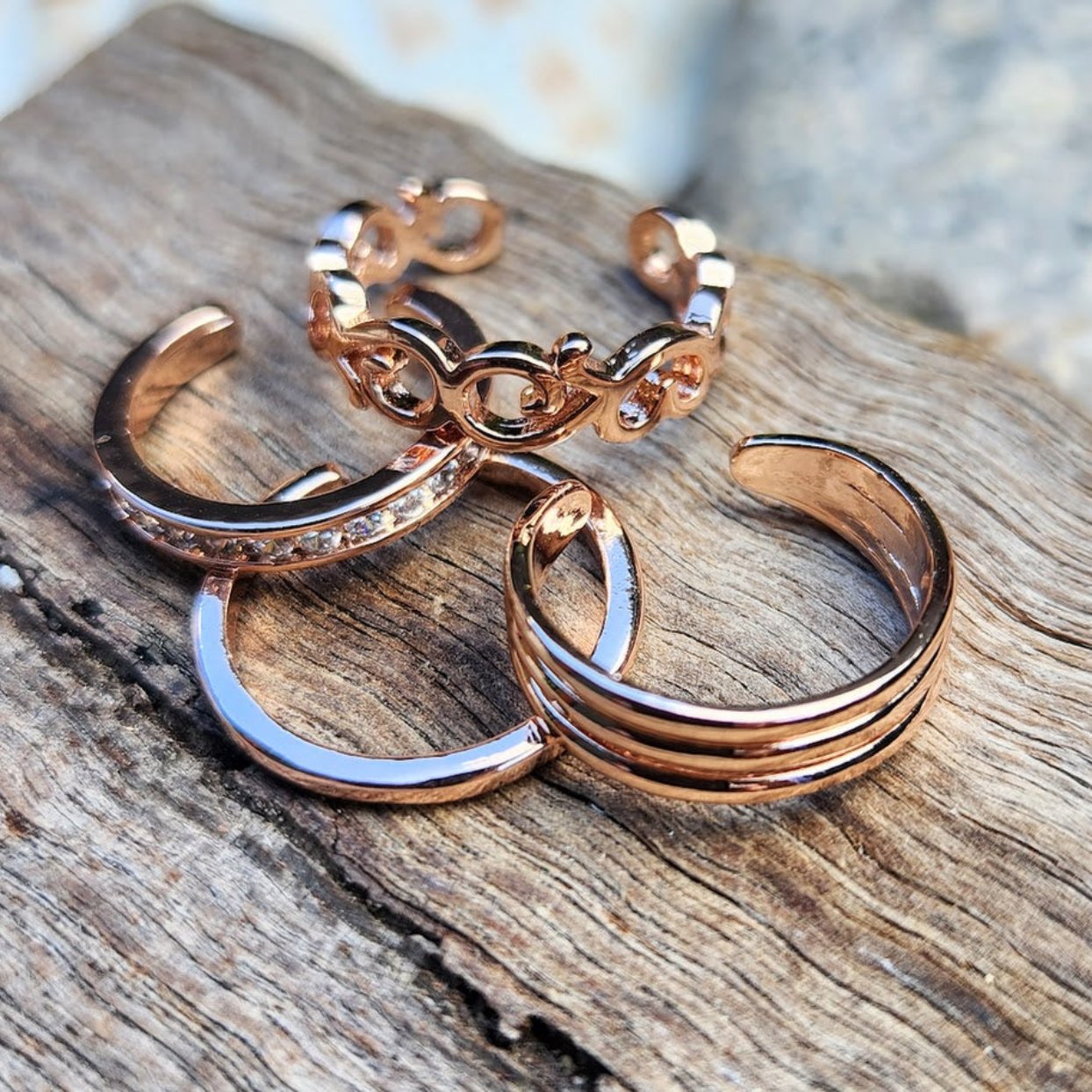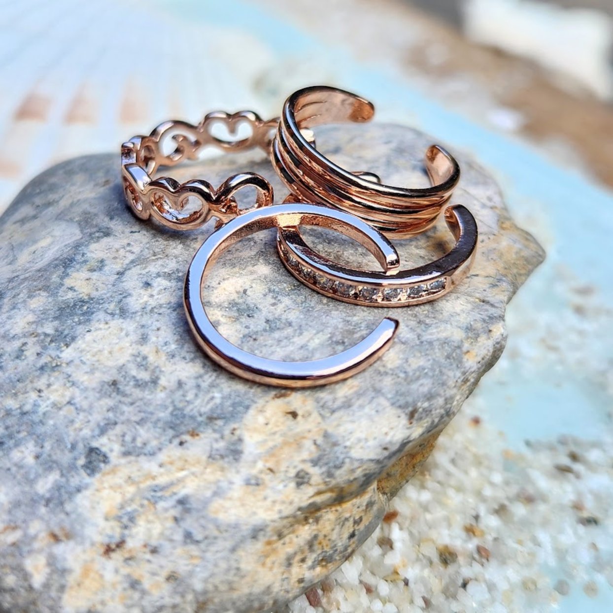 TOE RING SET - SET OF FOUR ROSE GOLD/ SILVER / 14K GOLD WATERPROOF TOE RINGS