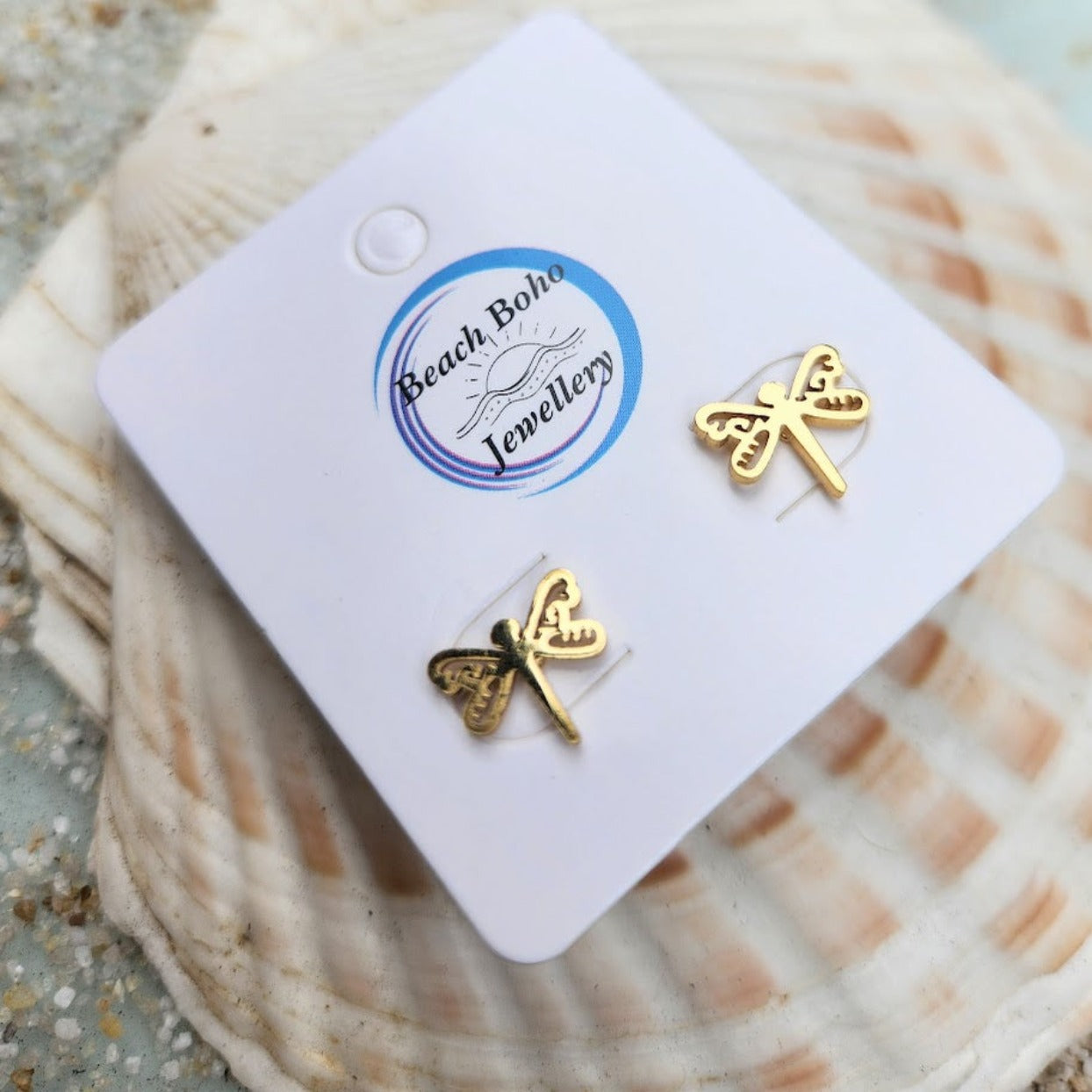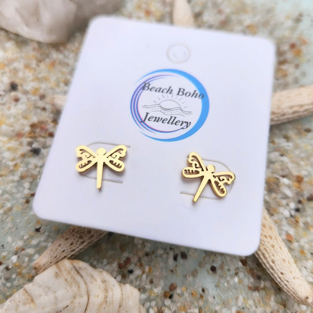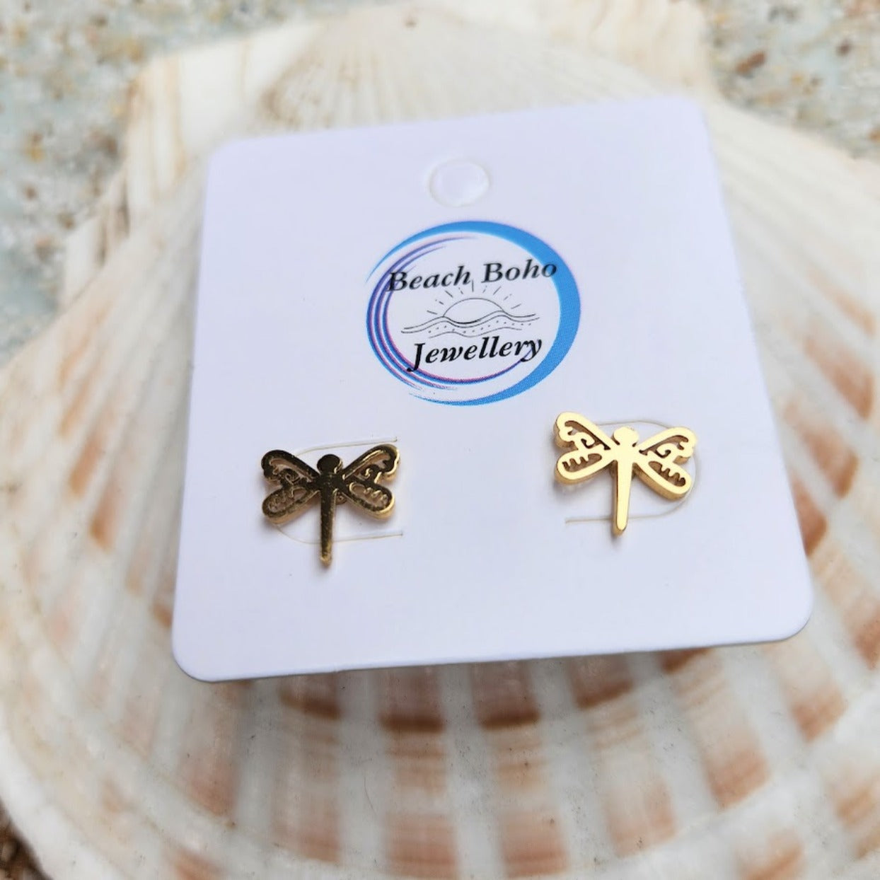 Sweet & Petite...18k Gold Dragonfly Stud Earrings made with Titanium Steel Tarnish Resistant