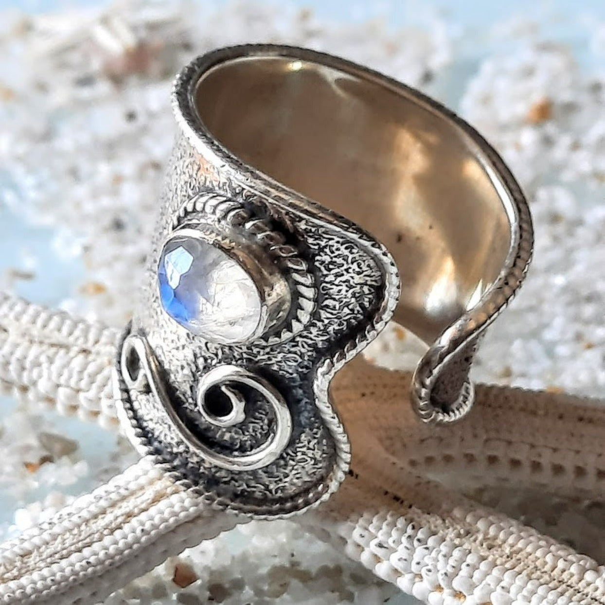 Handmade Moonstone Adjustable Sterling Silver Ring
