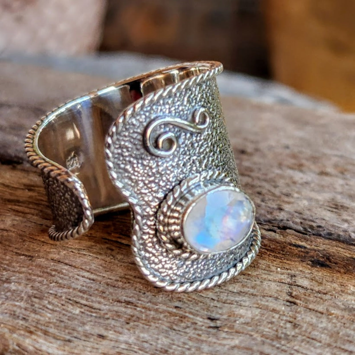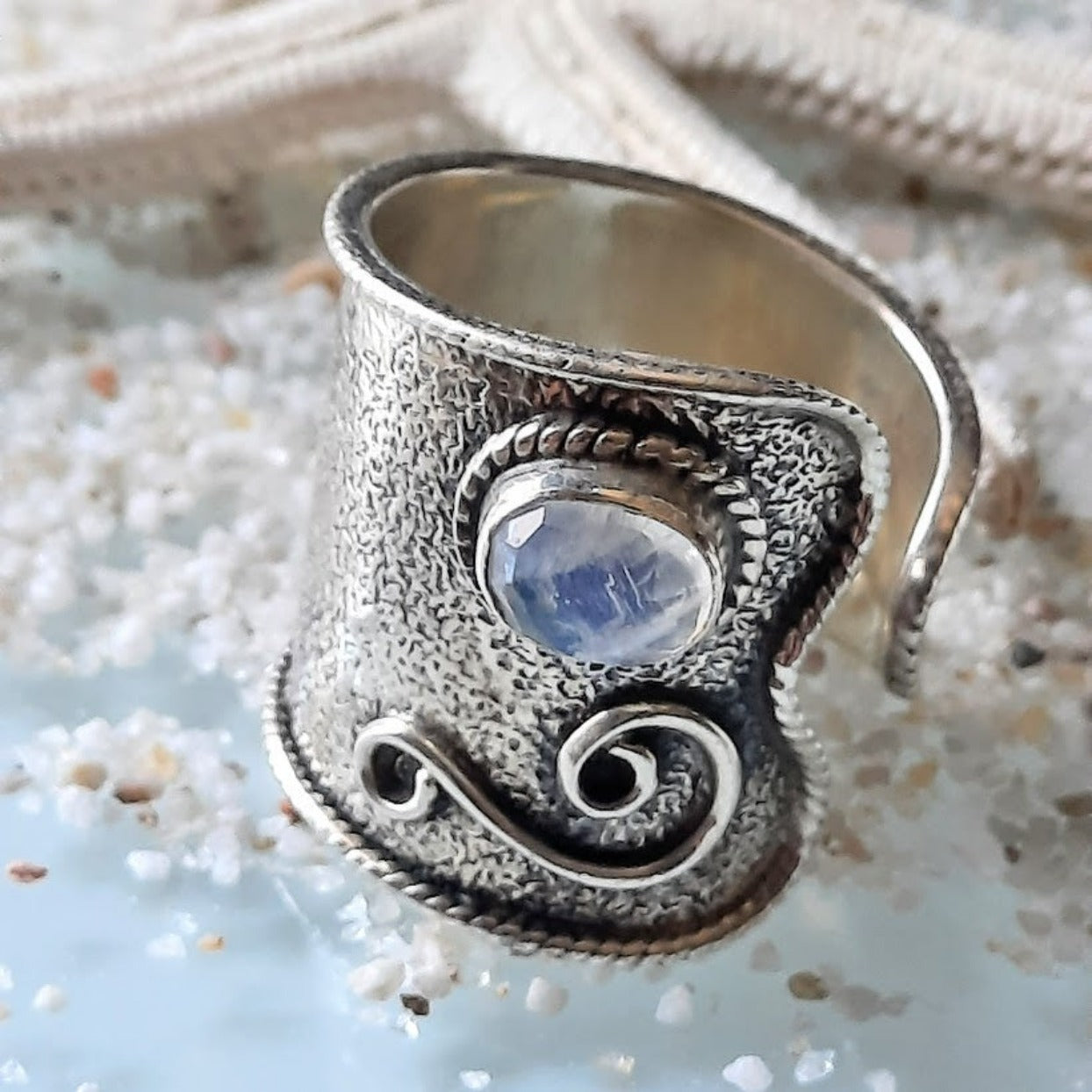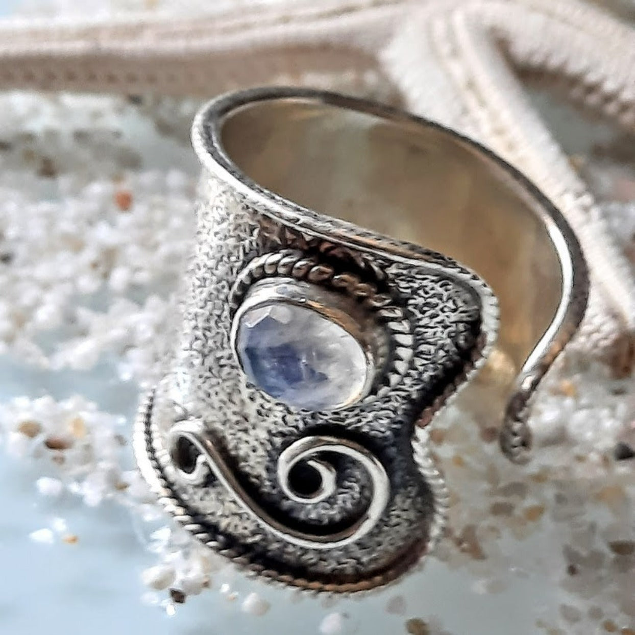 TRIBAL MOON - ADJUSTABLE MOONSTONE RING