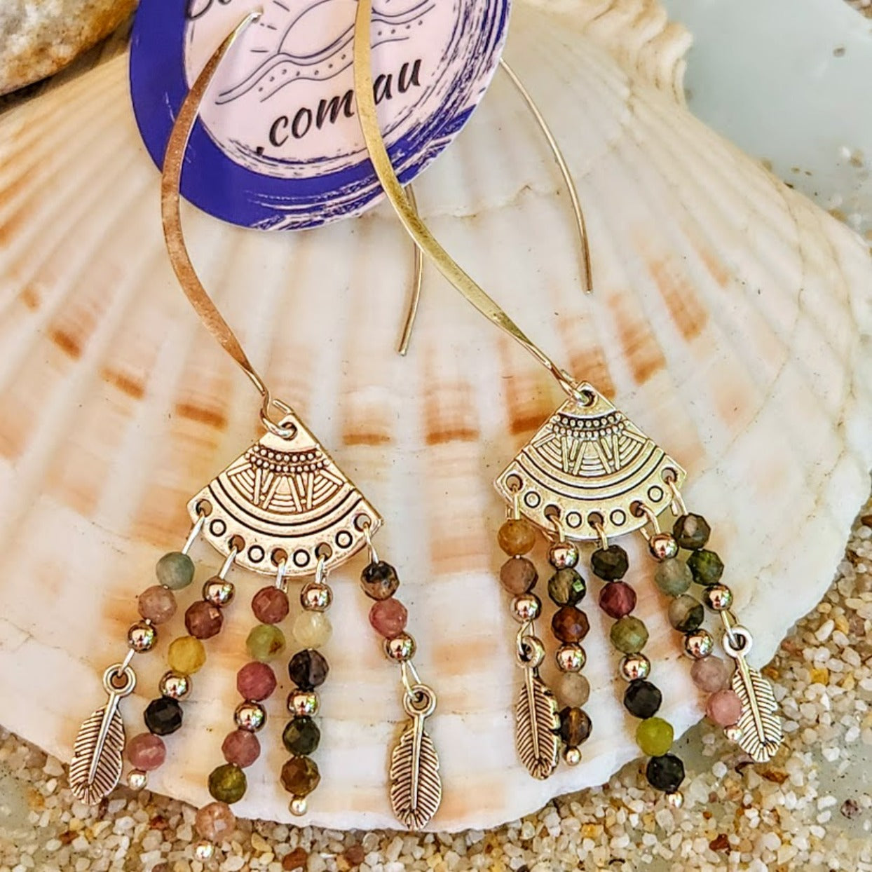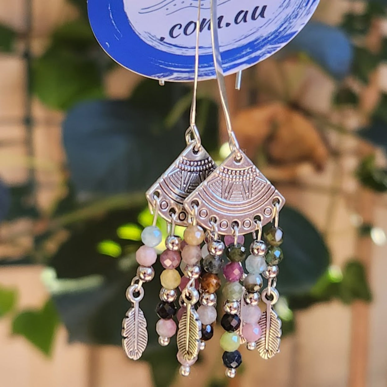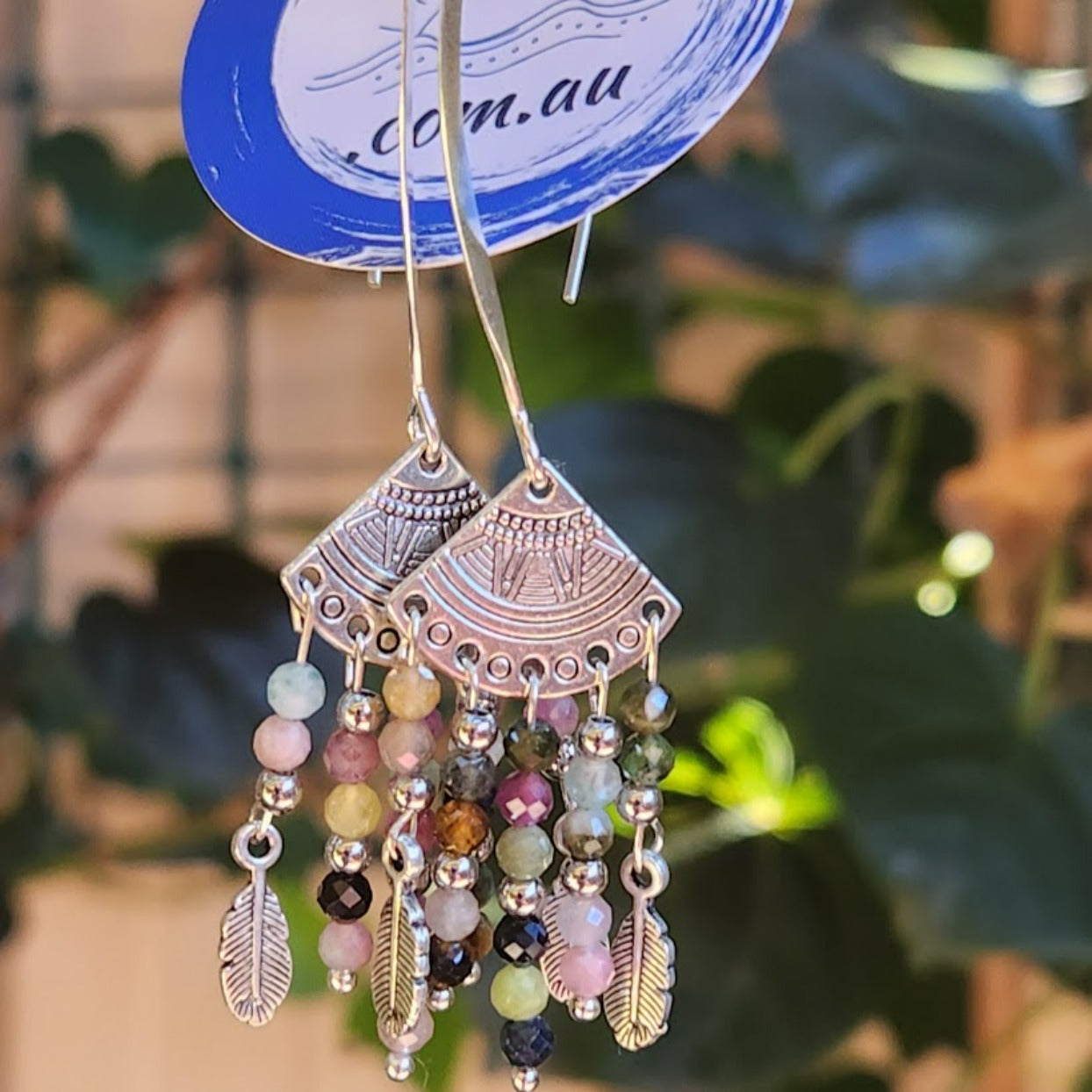 TRIBAL RAINBOW - TOURMALINE LEAF SILVER EARRINGS