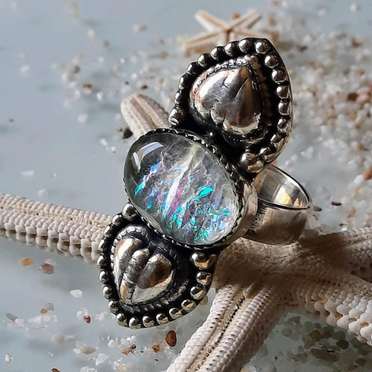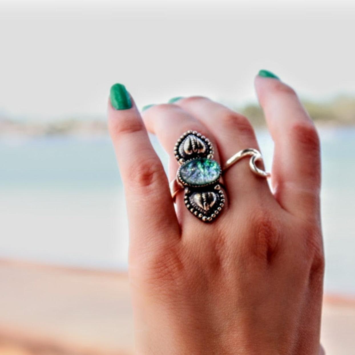 Stand Out Opal Statement 925 Sterling Silver Ring. Each Piece Unique made with Natural Opal Gems
