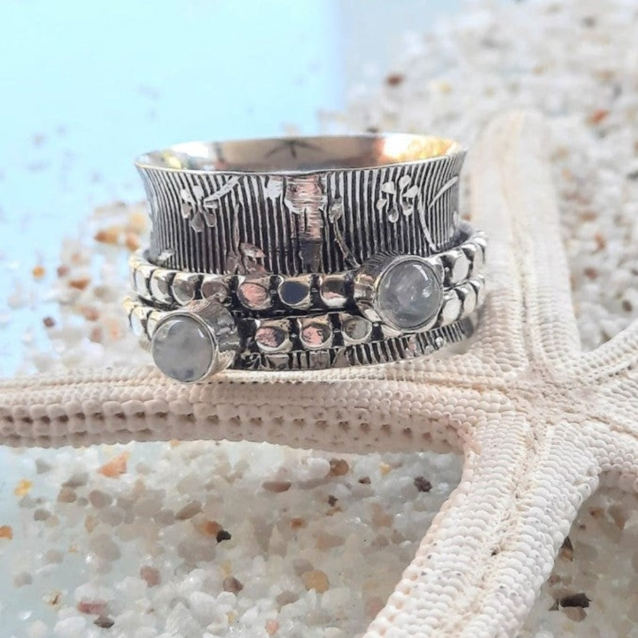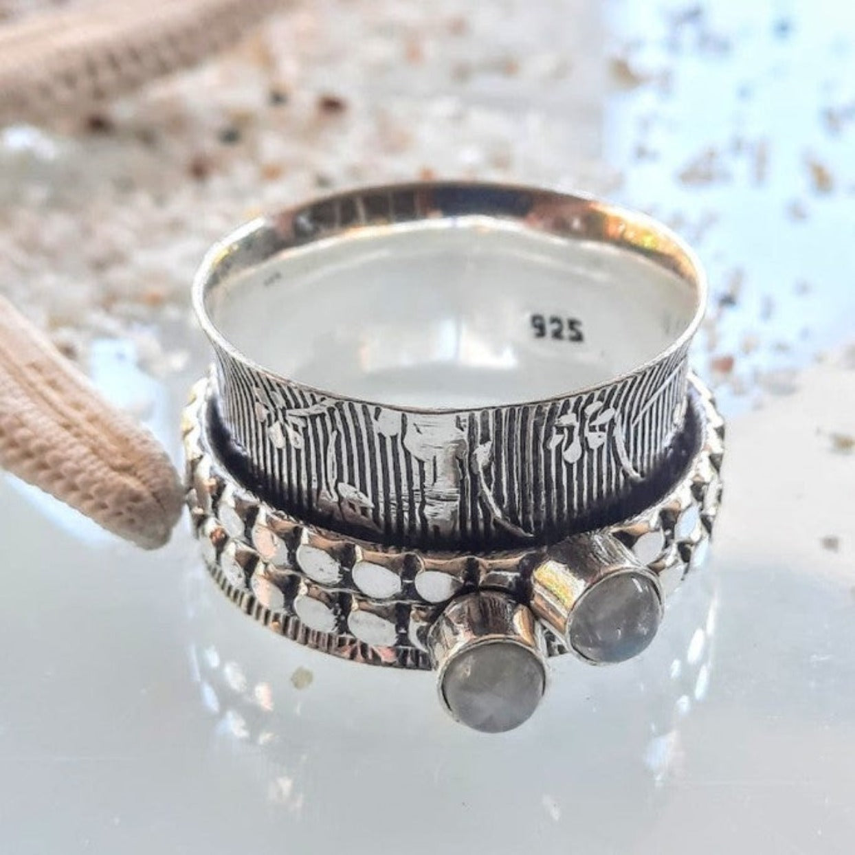 TWO MOONS - 925 SILVER SPINNER RING