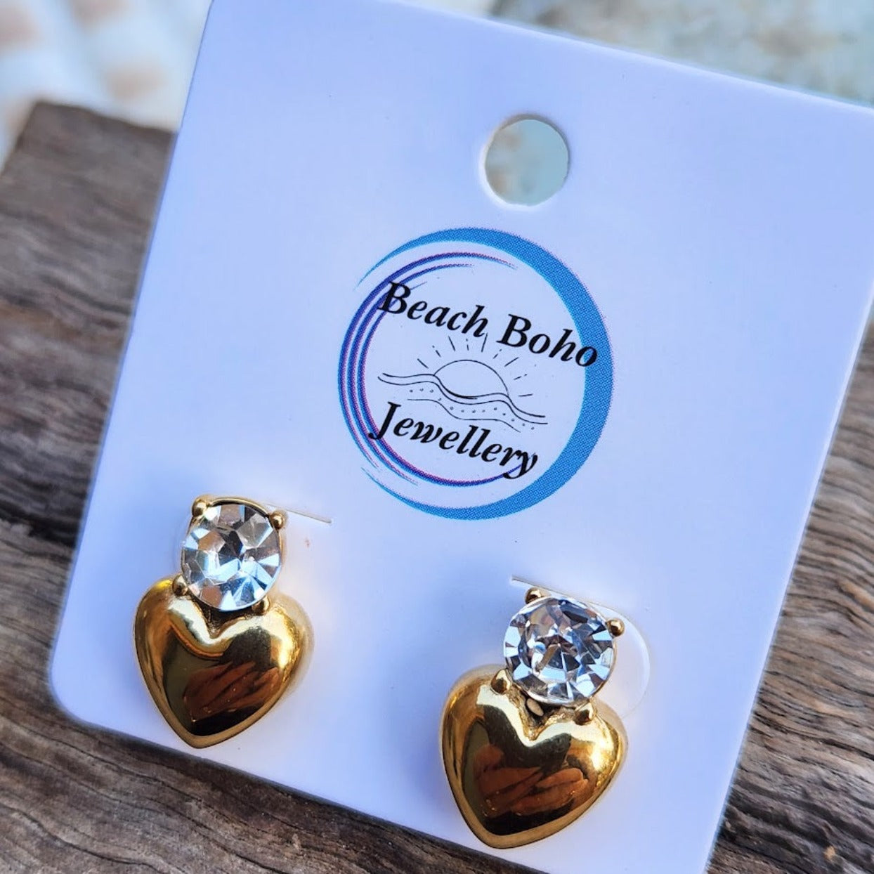 Waterproof Heart Earrings with stunning Cubic Zirconia 18k Gold Studs made with Titanium Steel Tarnish Resistant Jewellery