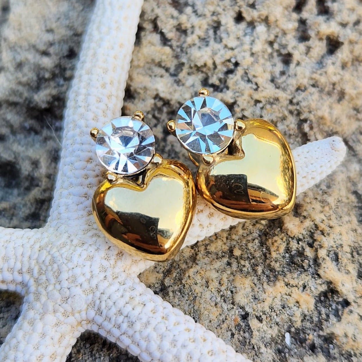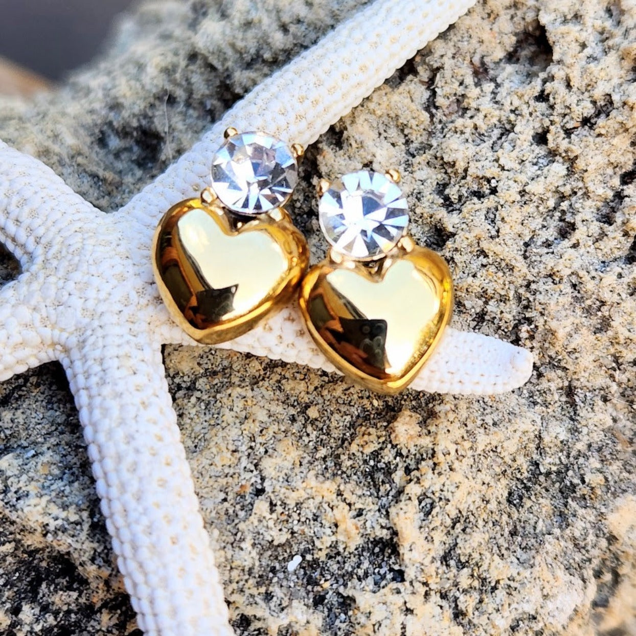 DIAMOND HEARTS - 18K GOLD WATERPROOF STUD EARRINGS